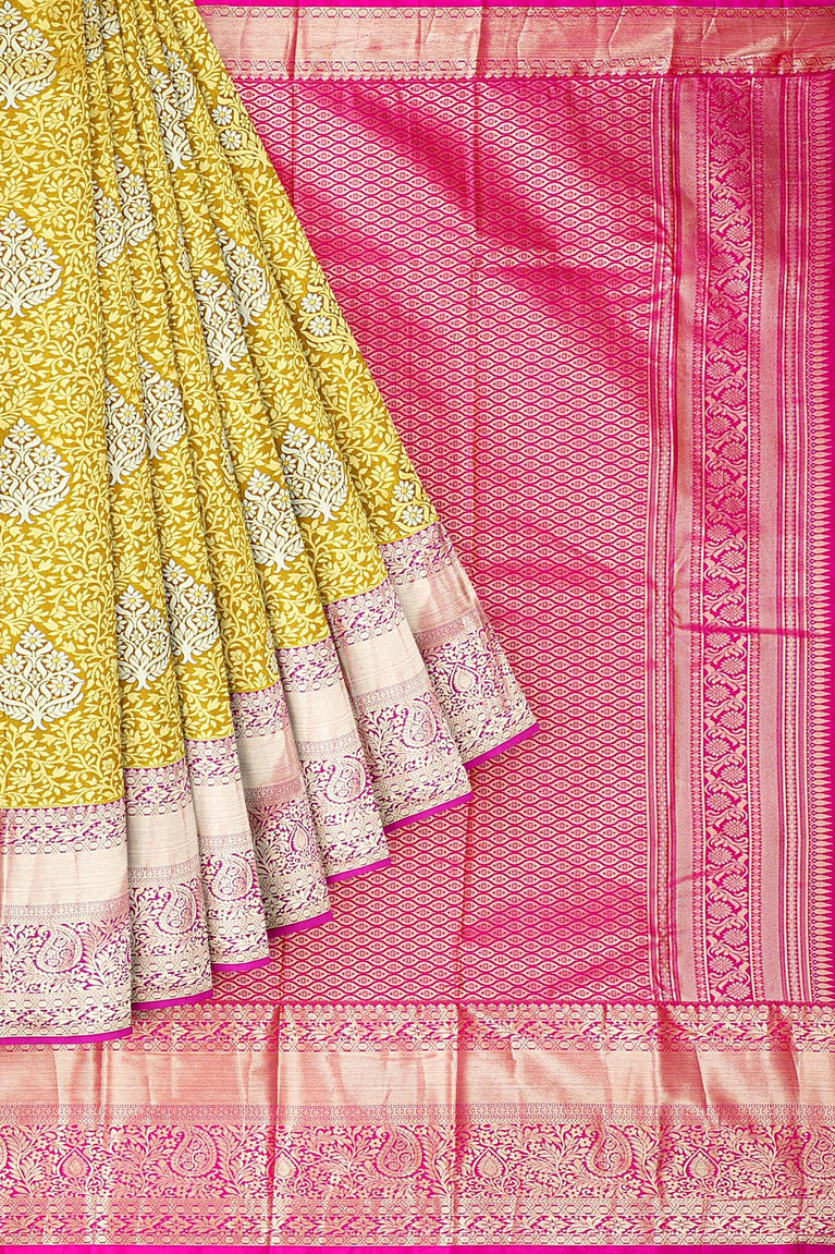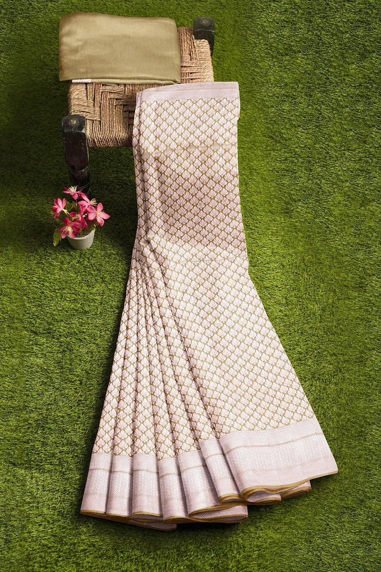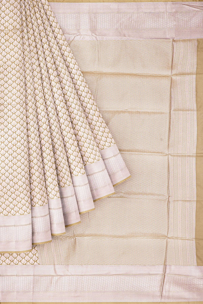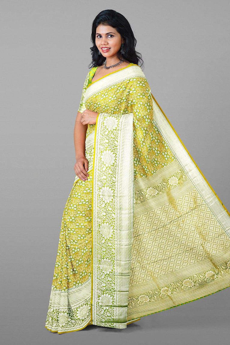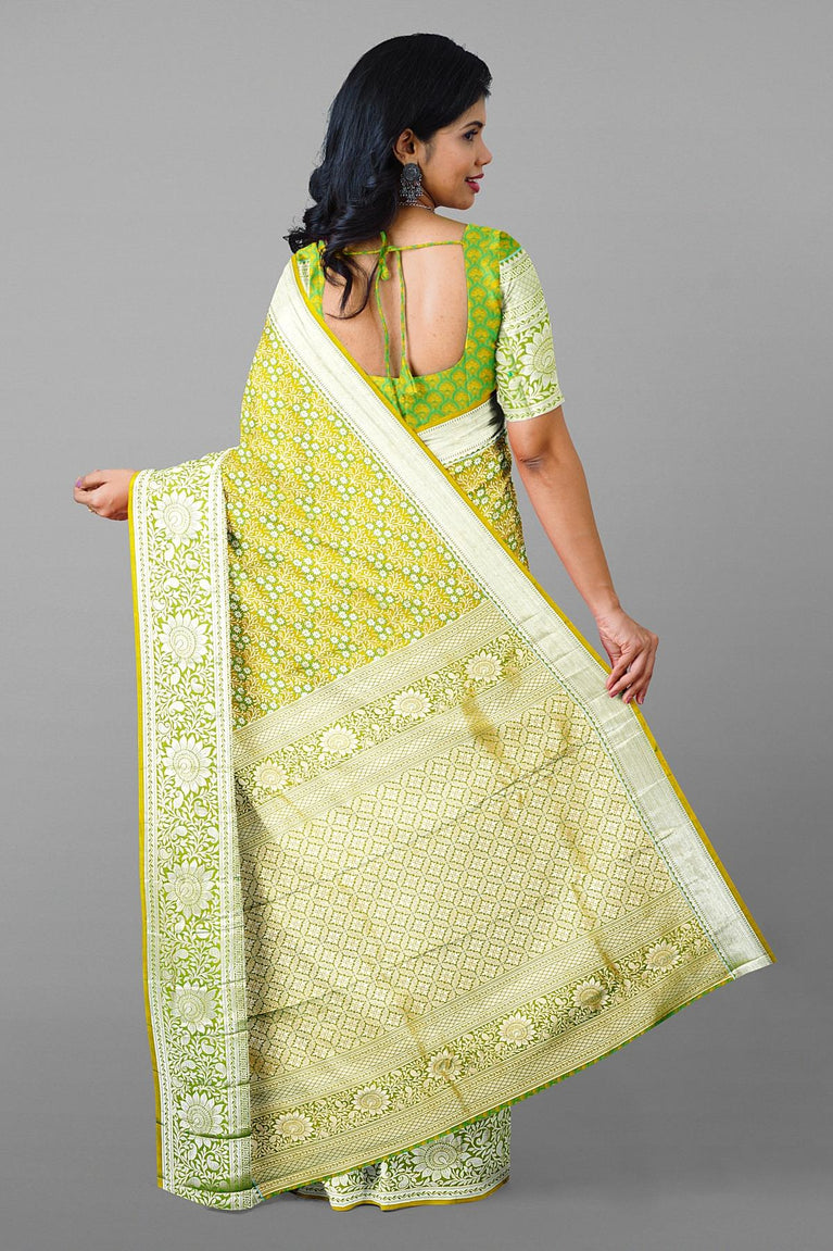 LIGHT OLIVE GREEN and SILVER FLORAL JAAL CHIFFON Saree with BANARASI FANCY