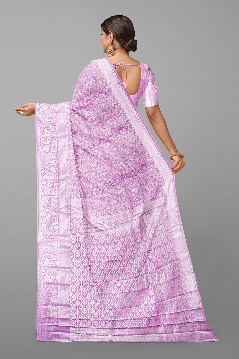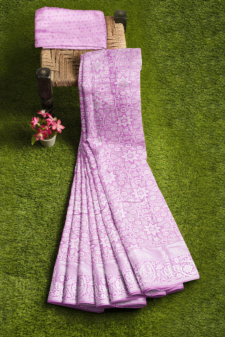 LIGHT PURPLE and RED FLORAL JAAL SILK Saree with KANCHIPURAM