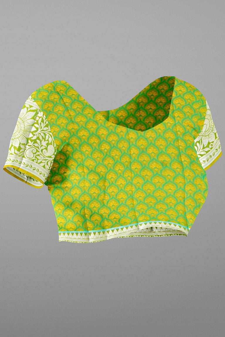 LIGHT GREEN and GREEN BUTTIS CHIFFON Saree with BANARASI FANCY