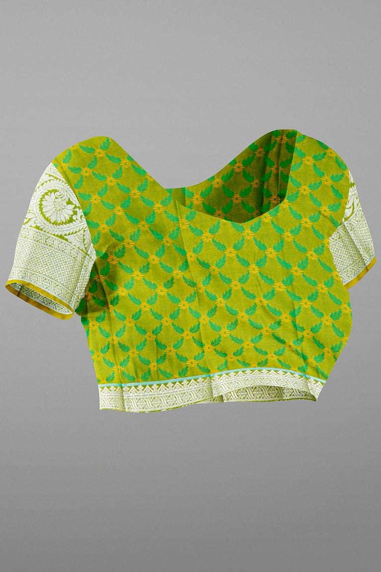 LIGHT GREEN and SILVER FLORAL JAAL SILK BLEND Saree with SEMI PATTU