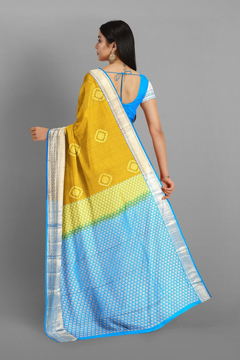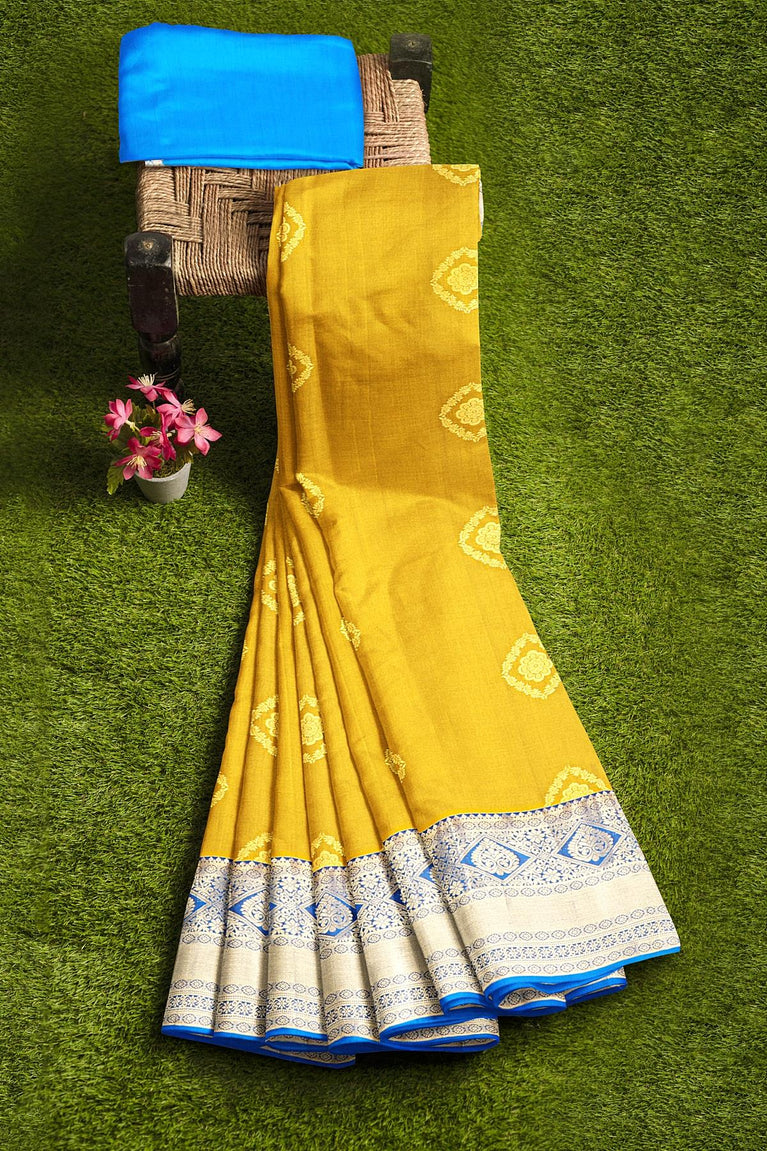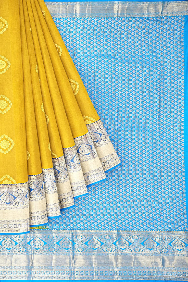 LIGHT OLIVE GREEN and BLUE BUTTIS SILK BLEND Saree with SEMI PATTU