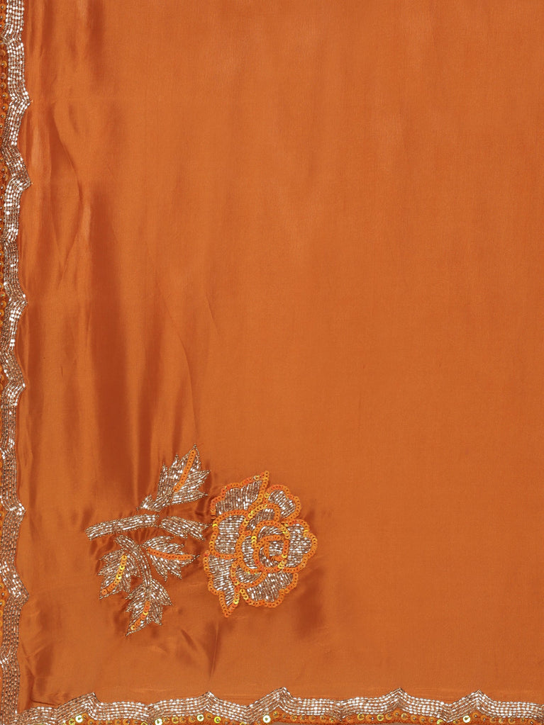 Elevate your traditional wardrobe with this Mustard Crepe Hand Embroidery Saree. Crafted from soft crepe fabric, it drapes gracefully for a flattering silhouette. The intricate hand embroidery adds a refined, artisanal touch, showcasing exceptional craftsmanship. Perfect for formal occasions or festive celebrations, this saree blends comfort with elegance, making it a timeless addition to your collection.
