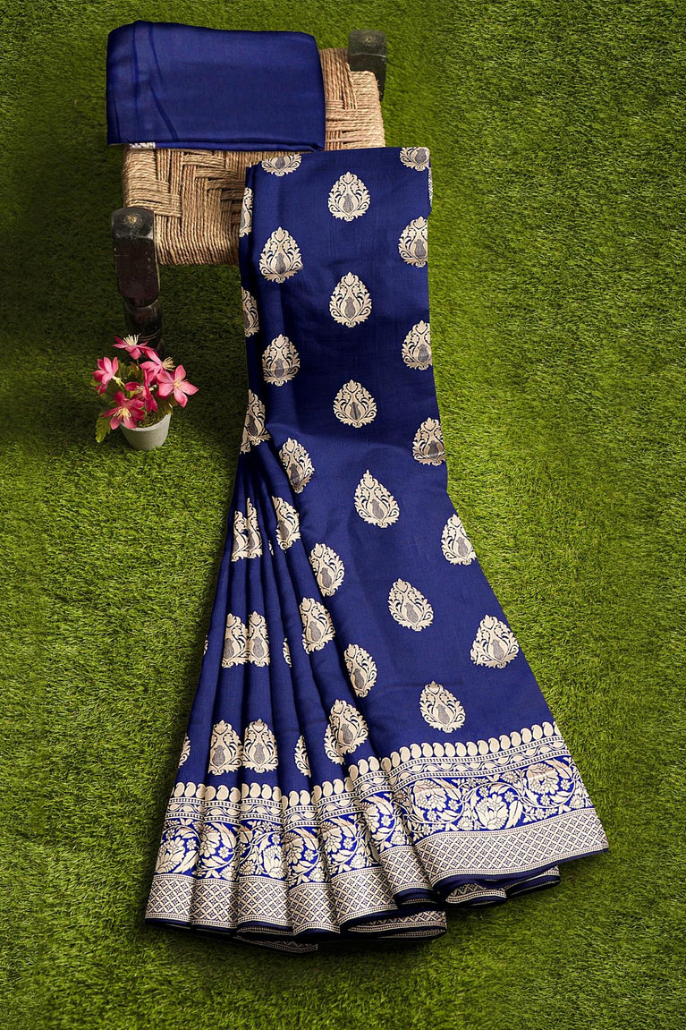 NAVY BLUE and SILVER BUTTIS CHIFFON Saree with BANARASI FANCY