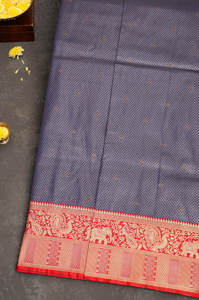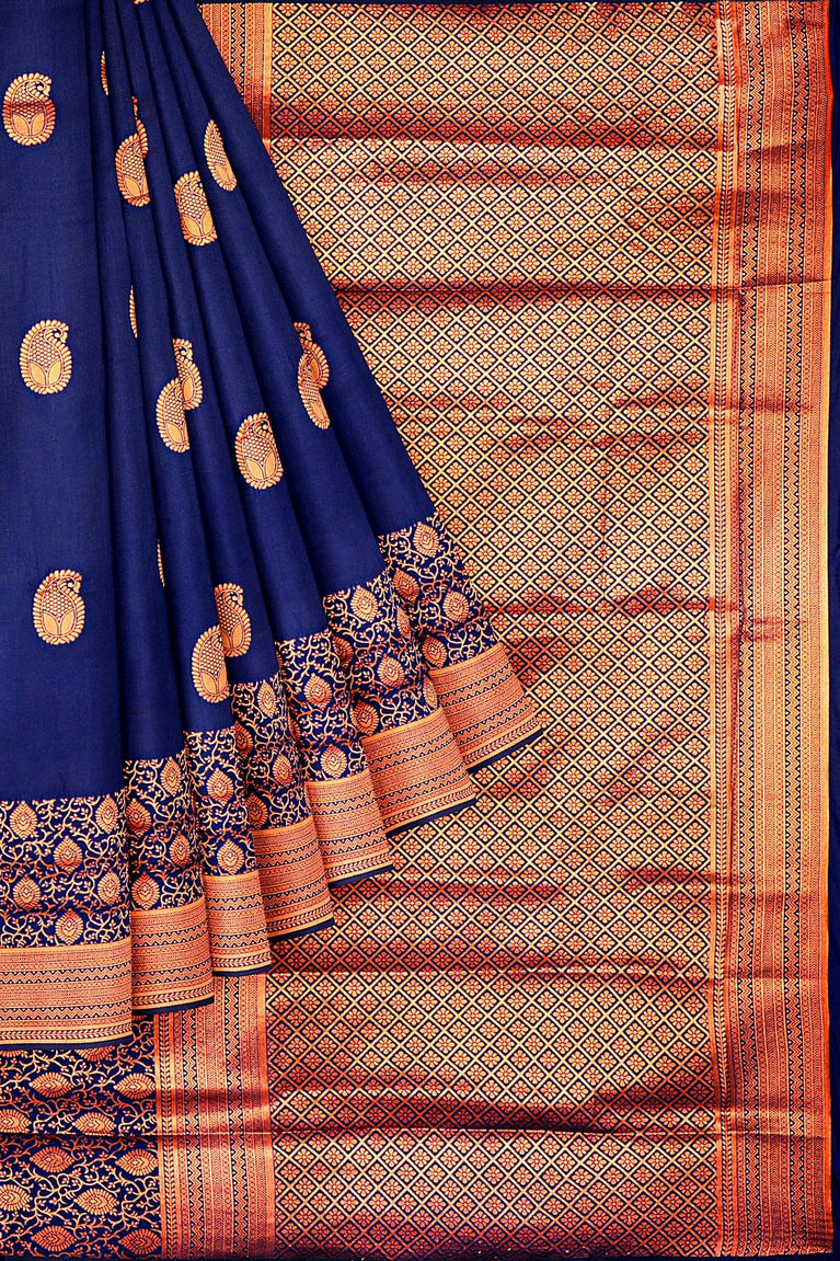 Navy Blue Mysore Crepe Saree With Zari Jaal Border