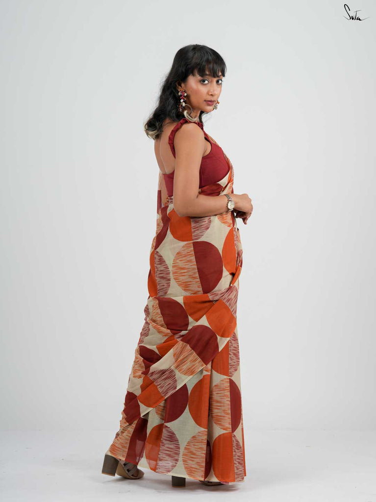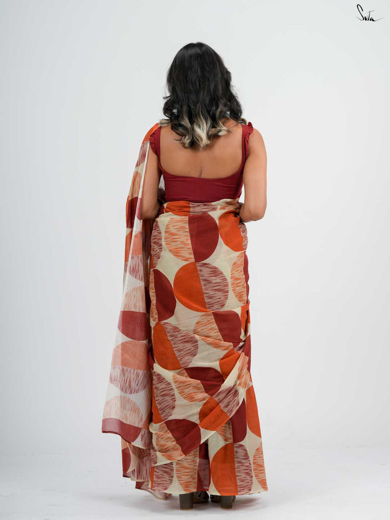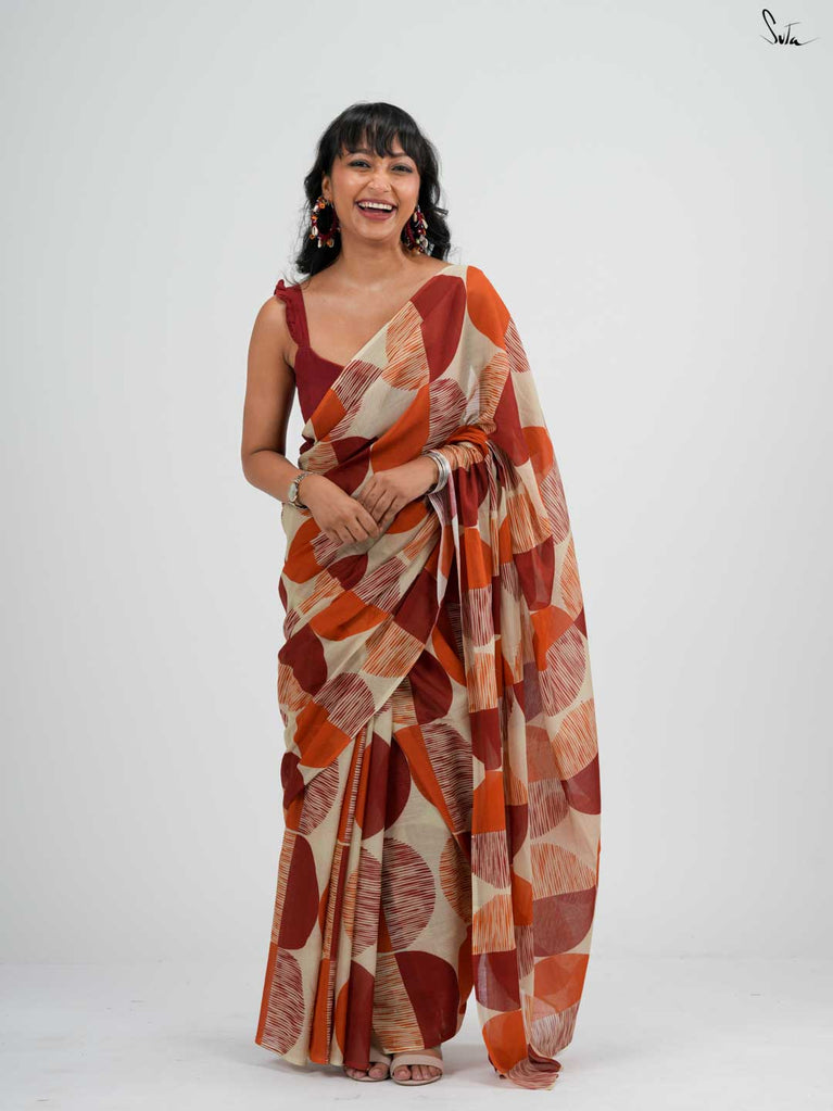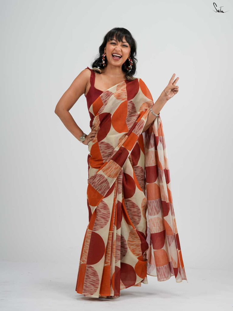 Printed Saree with Stitched Jarkan Blouse & Digital Print Pallu