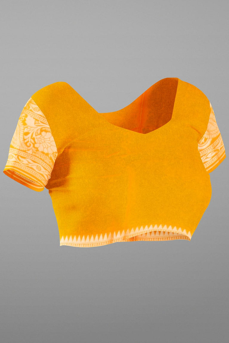 YELLOW and GOLD FLORALS SILK BLEND Saree with SEMI PATTU