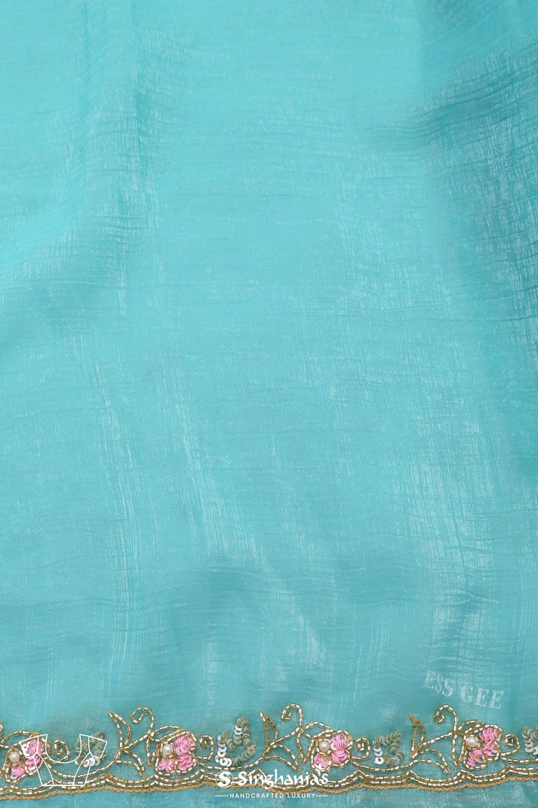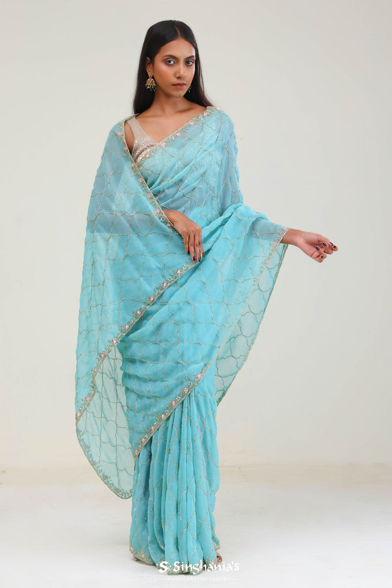 Bright Blue Silk Jaali Crafted Saree