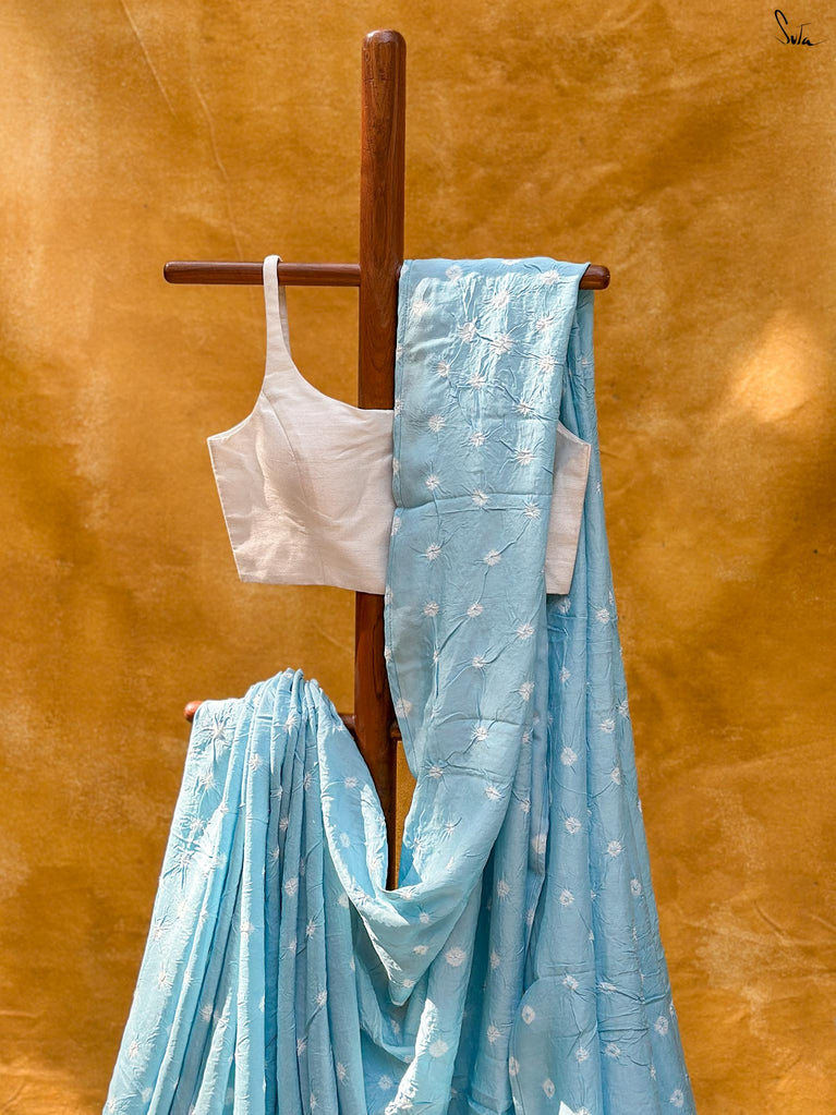 Fabric: Saree chanderi body ajrakh pbb bandhani