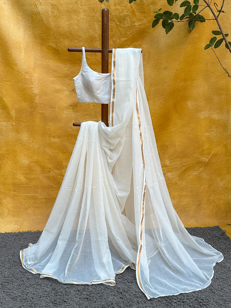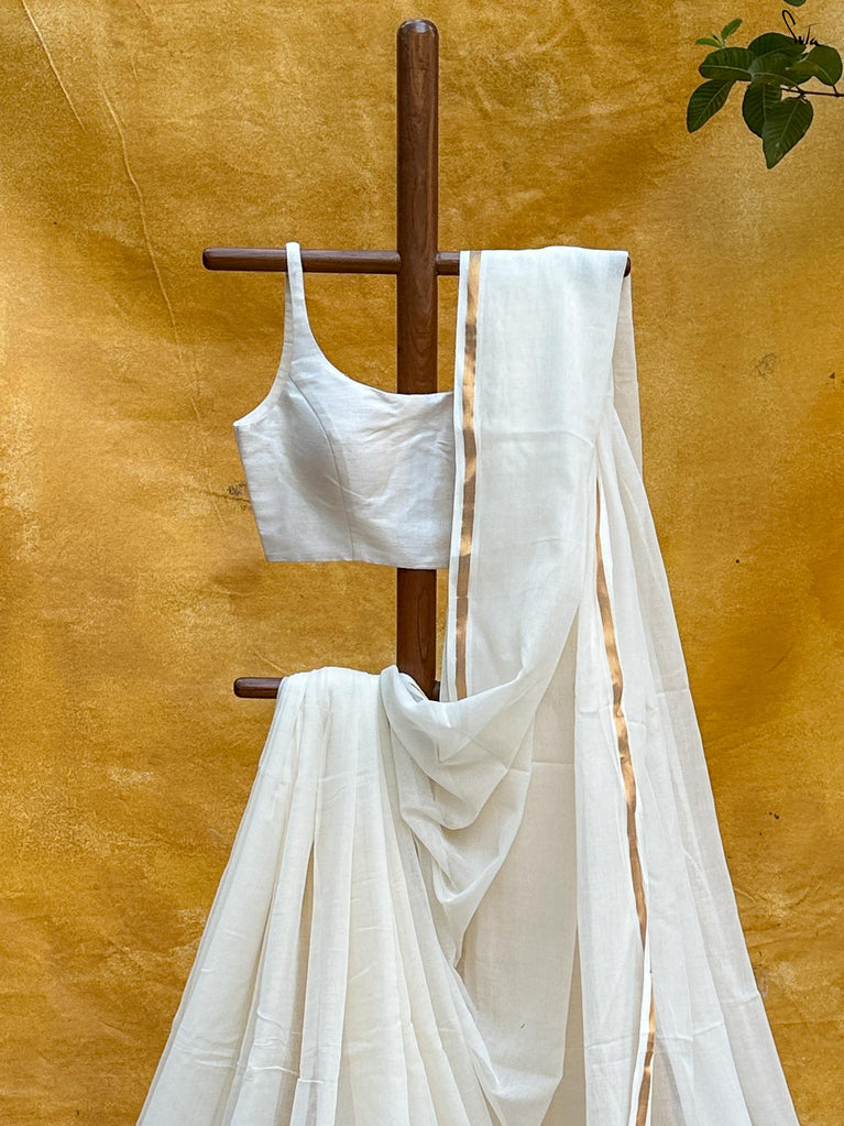 Note: Our mul sarees are slightly transparent, it’s the nature of the fabric and part of its soft, airy charm.