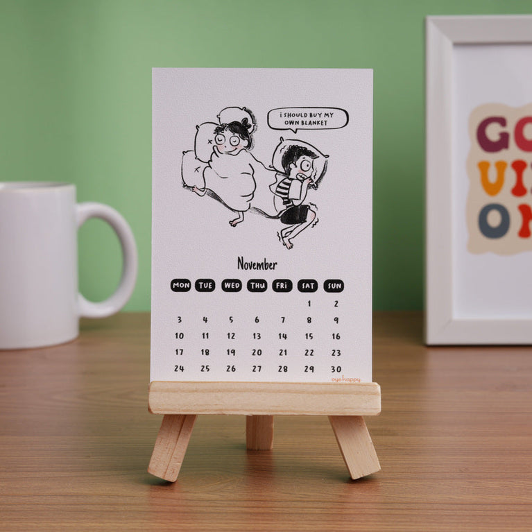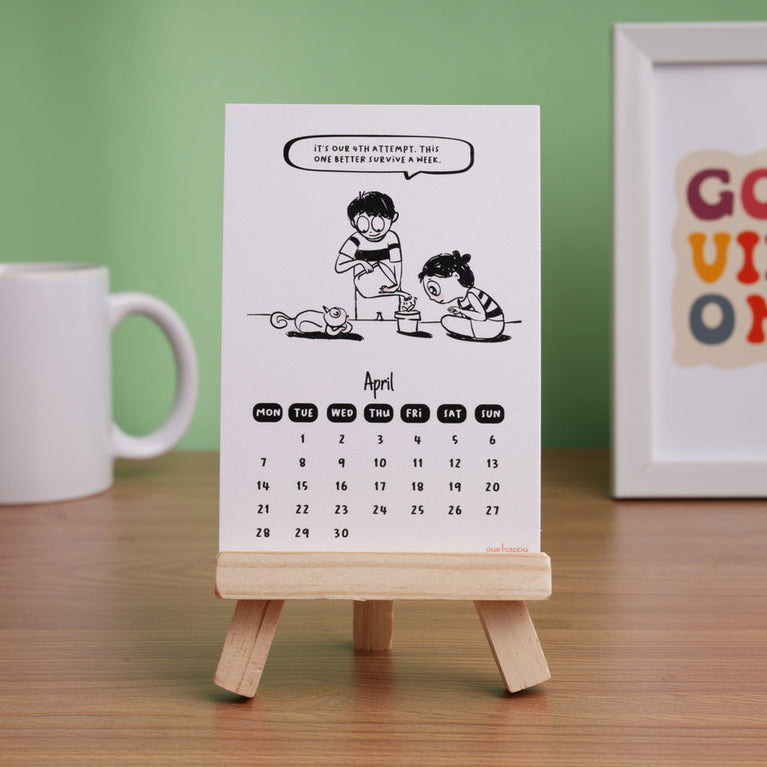 This calendar is for people who look at a cat and instantly feel happier.Each month comes with a cute cat moment that’ll make you smile without even trying.If you’re a cat parent, this calendar will feel like your best desk buddy (if only your cat allows it!)And if you’re gifting it, it’s perfect for anyone who talks about their cat more than anything else.Specifications-Size of the Easel : 4.5 x 3.5 inches