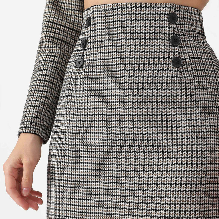 These checkered pattern regular fit skirts has above knee length, high rise waist. Made from cotton, it is soft and comfortable to wear.