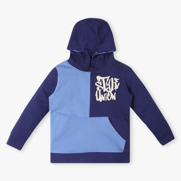 These street wear theme, solid pattern sweatshirt has hoodie and full sleeve. Made from cotton, your kid's feel comfortable wearing the product.