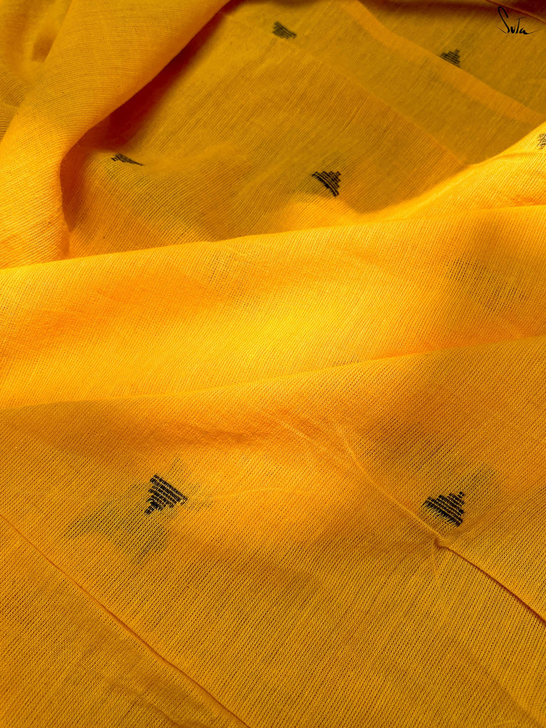 Handwoven Mustard Yellow cotton silk saree.