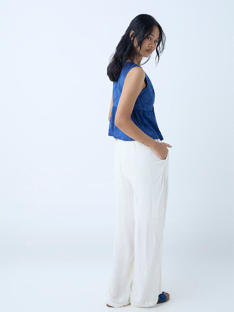 Bombay Paisley Indigo Floral Embroidered Cotton-Blend Top