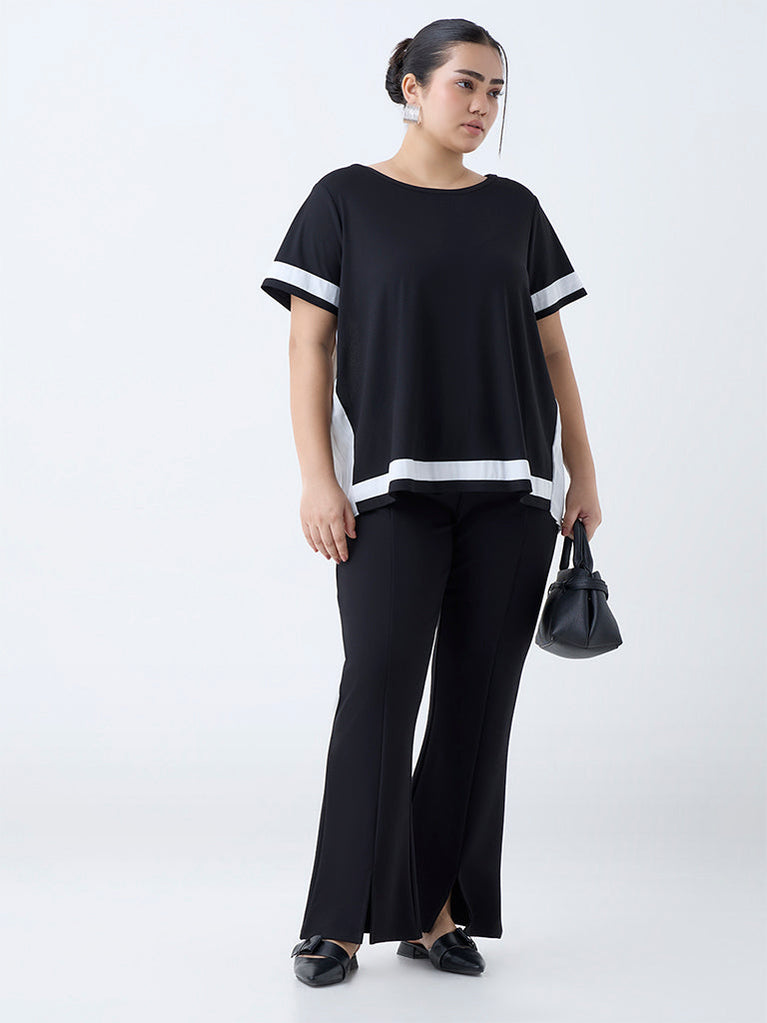 Make a stylish statement wearing this black top from Gia, fashioned in a trendy colour-blocked profile with contrasting accordion pleats at the back for a contemporary edge. Designed with a classic round neck and short sleeves, it is milled from a breathable fabric for all-day comfort.