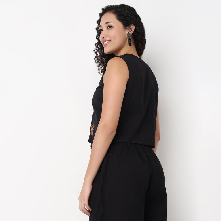Elevate your wardrobe with our Embroidered Round Neck Top, designed for women who appreciate a blend of elegance and comfort. Crafted from high-quality polyester, this top features a beautiful embroidered pattern that adds a touch of sophistication to any outfit.