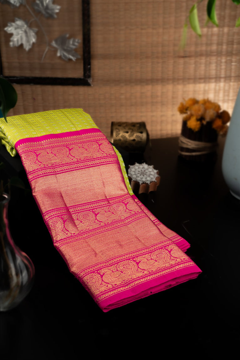 Varamahalakshmi Parrot Green & Pink Kancheepuram Florals Saree