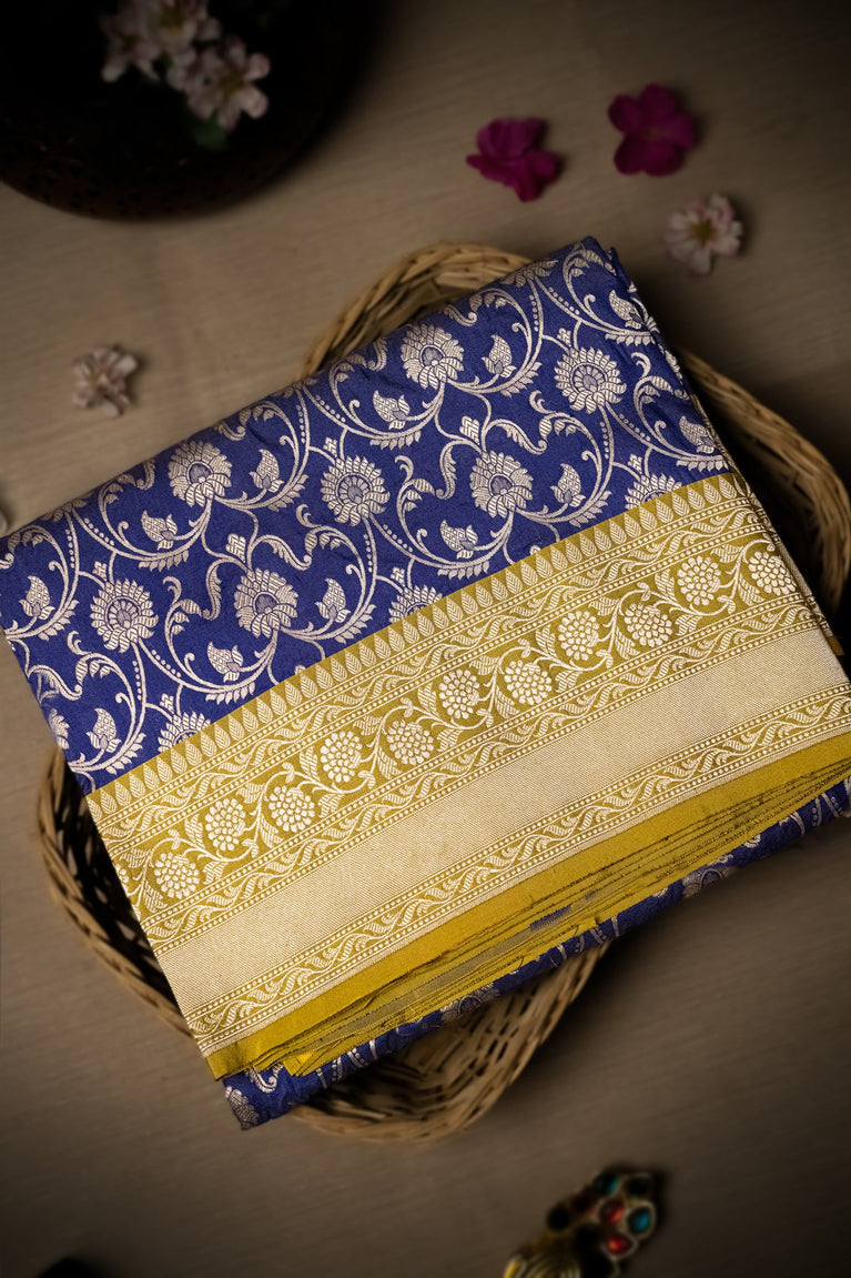 Varamahalakshmi Royal Blue & Yellow Banarasi Jaal Saree