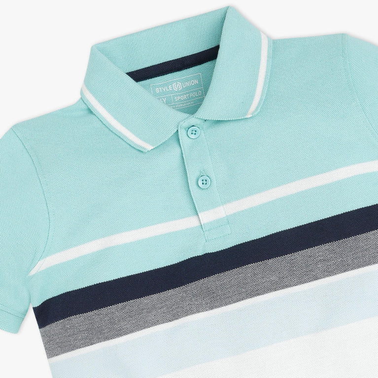 Boys Striped Sports Polo Neck Yarn Dyed T-Shirt