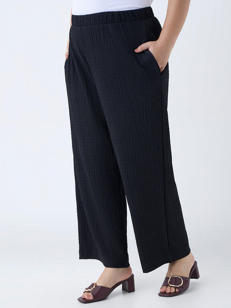 Elevate your style quotient with these black pants from Gia. Crafted from a crinkle-textured fabric for ultimate comfort, they feature a smooth elasticated waistband and side pockets for all-day ease and functionality.