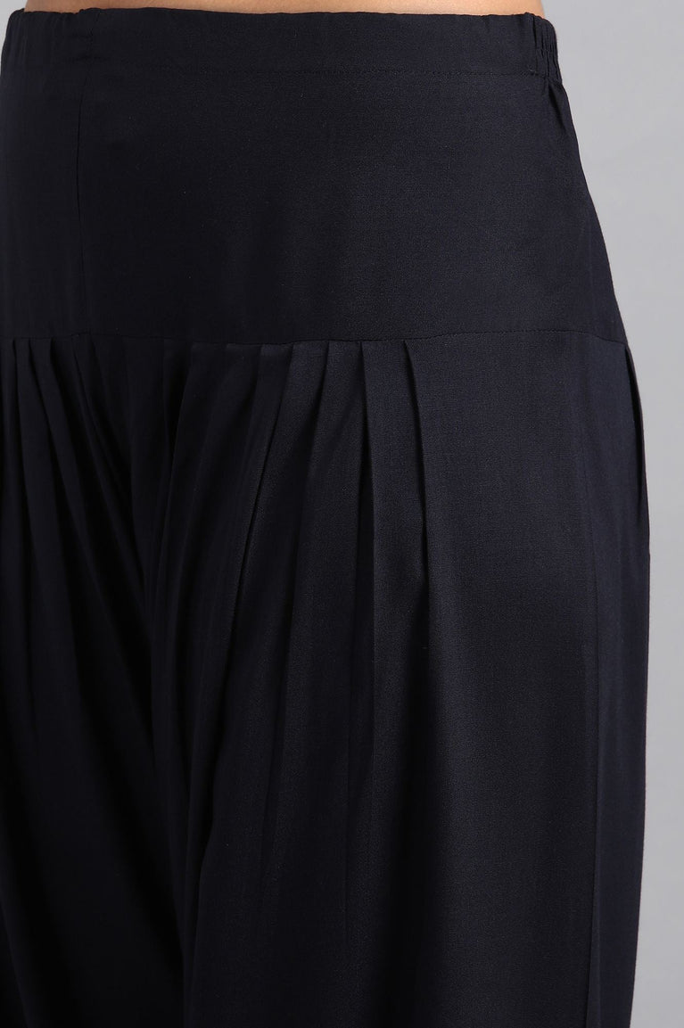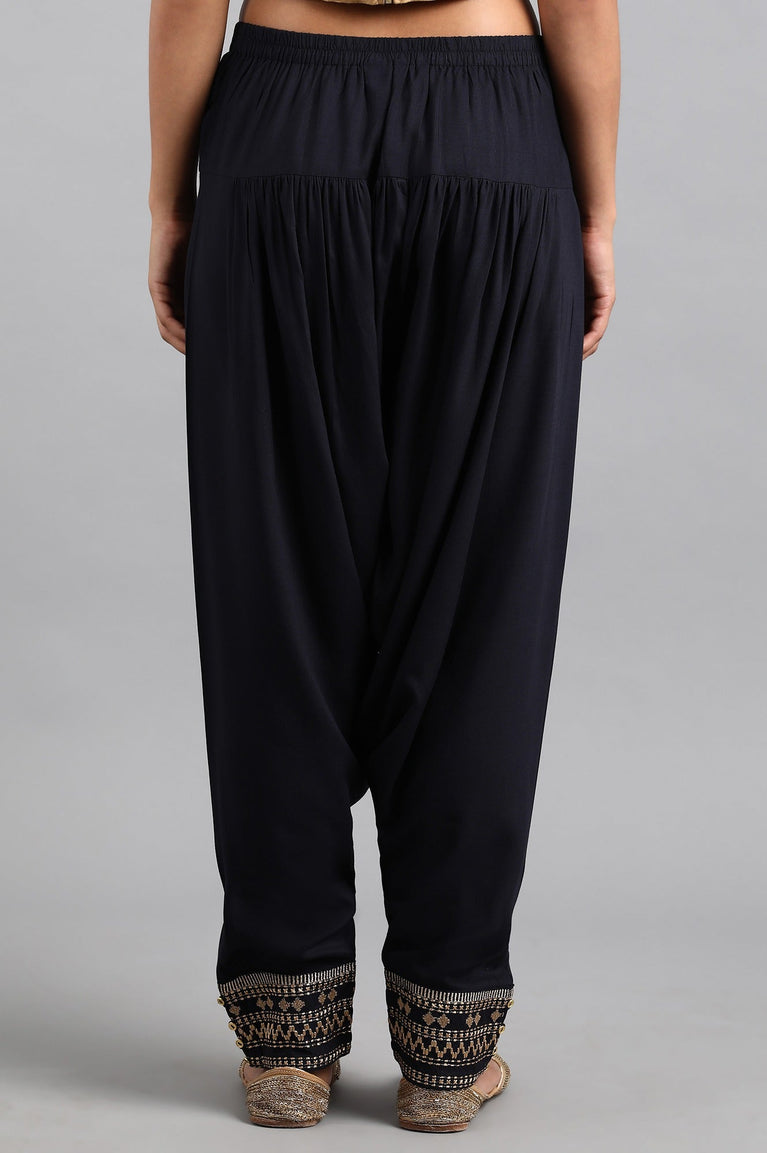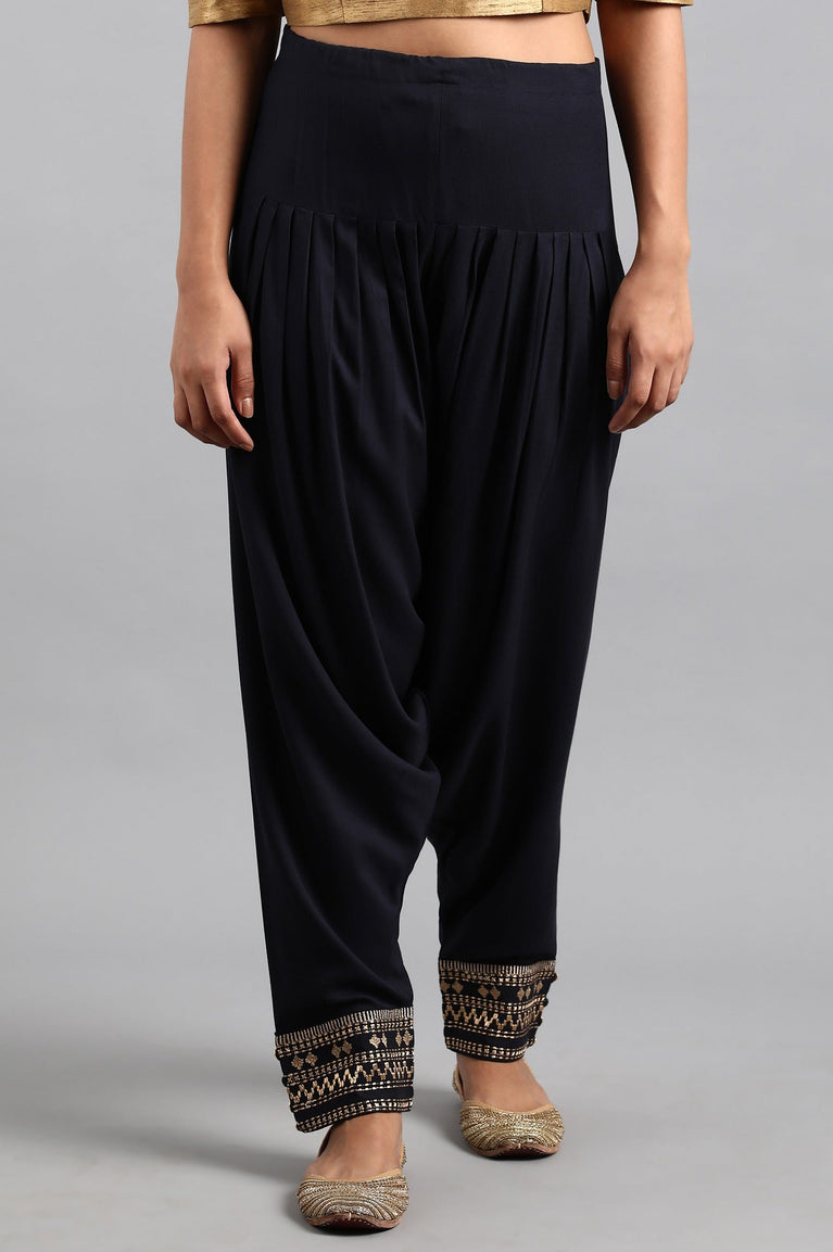 Blue ankle length trousers with elasticated back. It is made up of cotton flax.