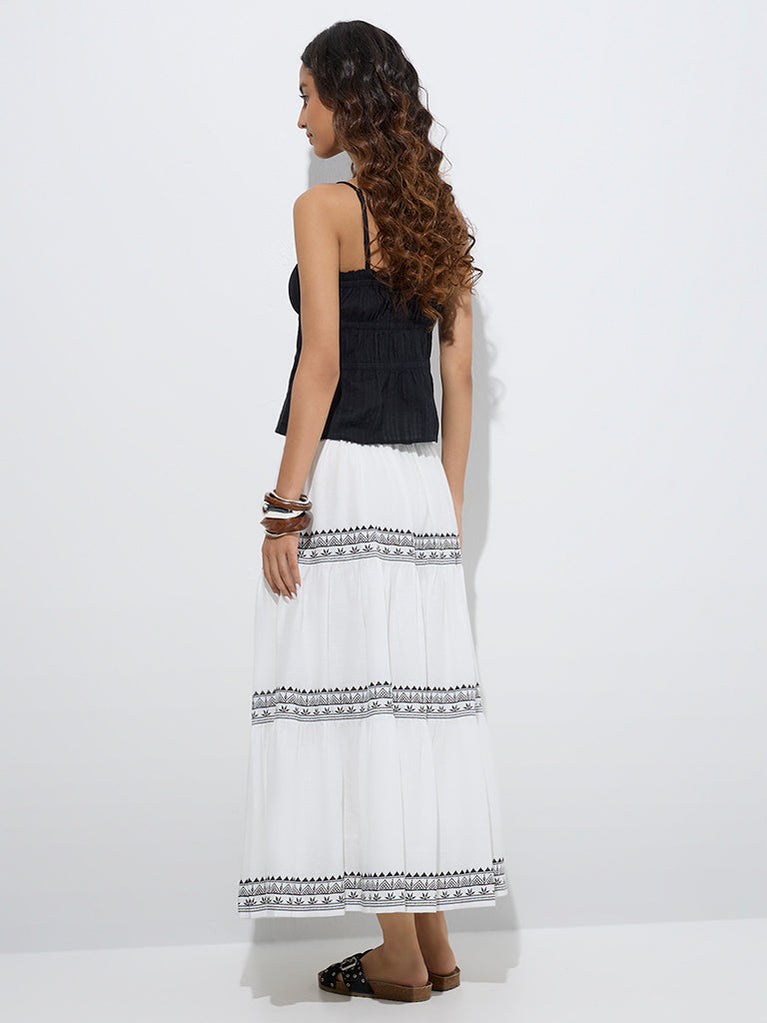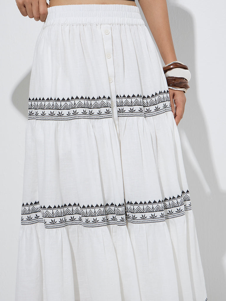 Bombay Paisley White Embroidered Cotton Tiered Skirt