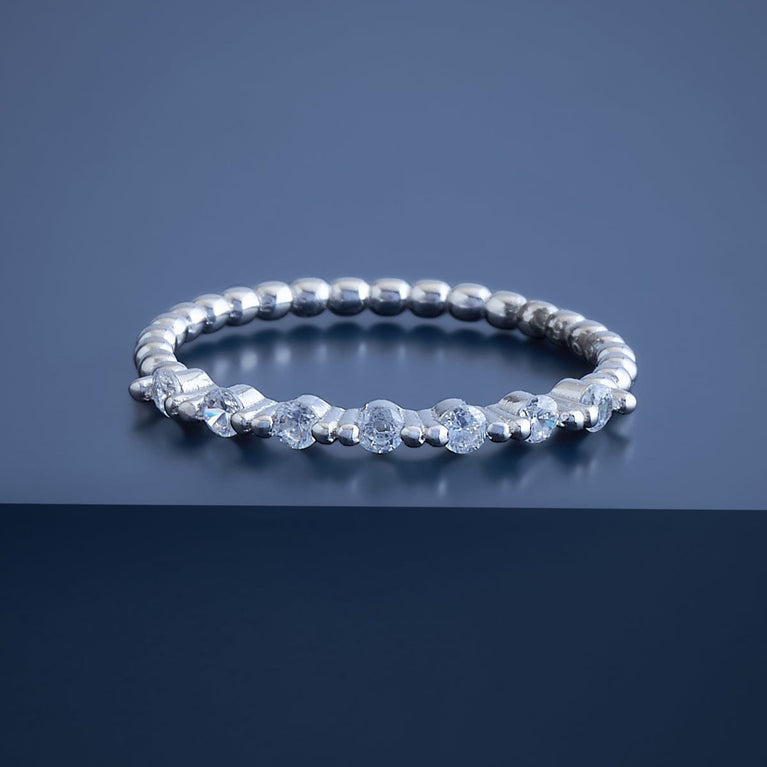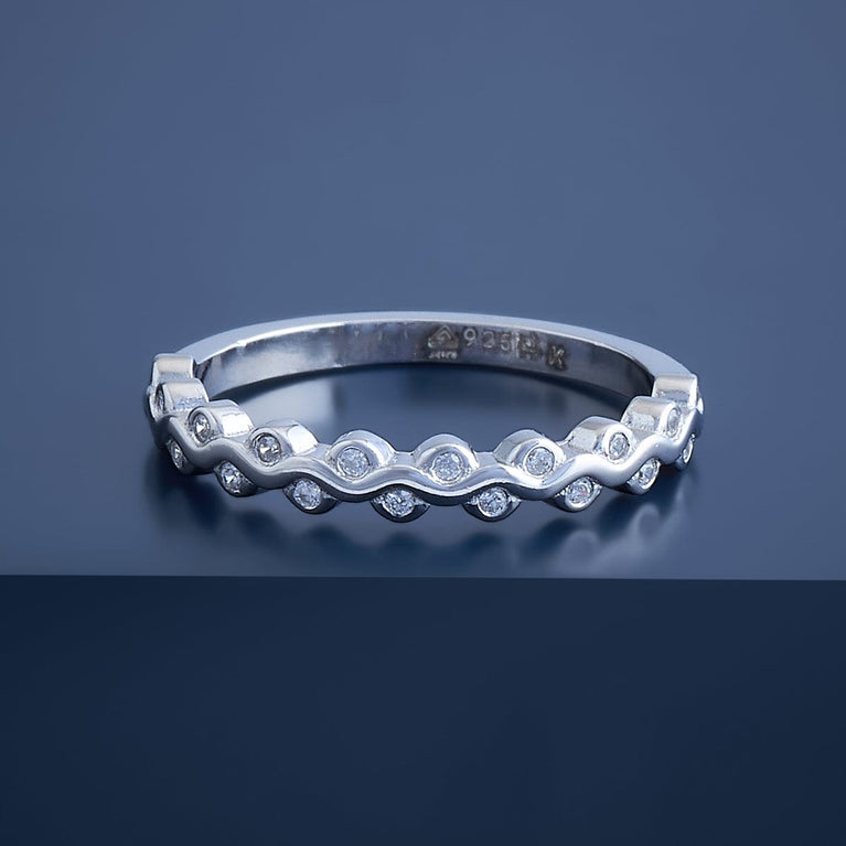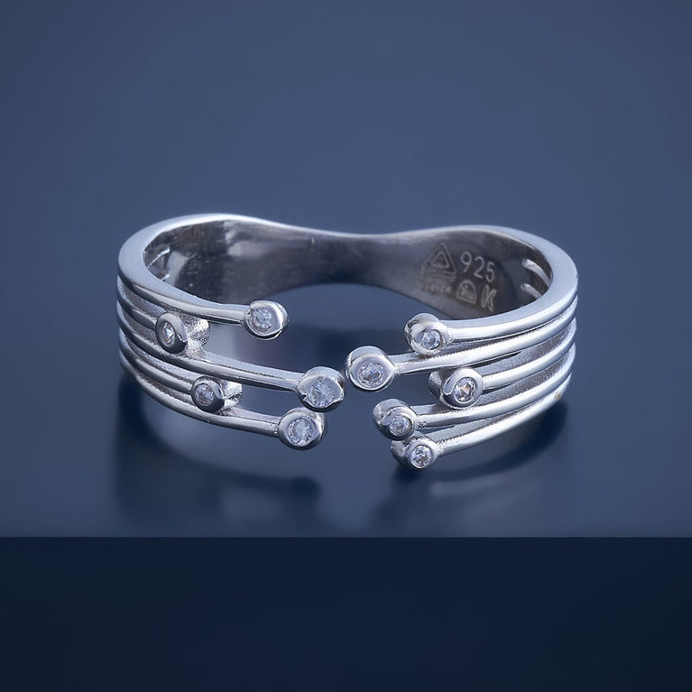 92.5 Pure Silver Stackable Finger RingShine every day with this 92.5 silver finger ring, featuring a bunch of small white zircon stones clustered in the centre, set in a sleek gold or rhodium polish. Wear it with your favourite casual chic outfit for a touch of glam that�s sure to turn heads!