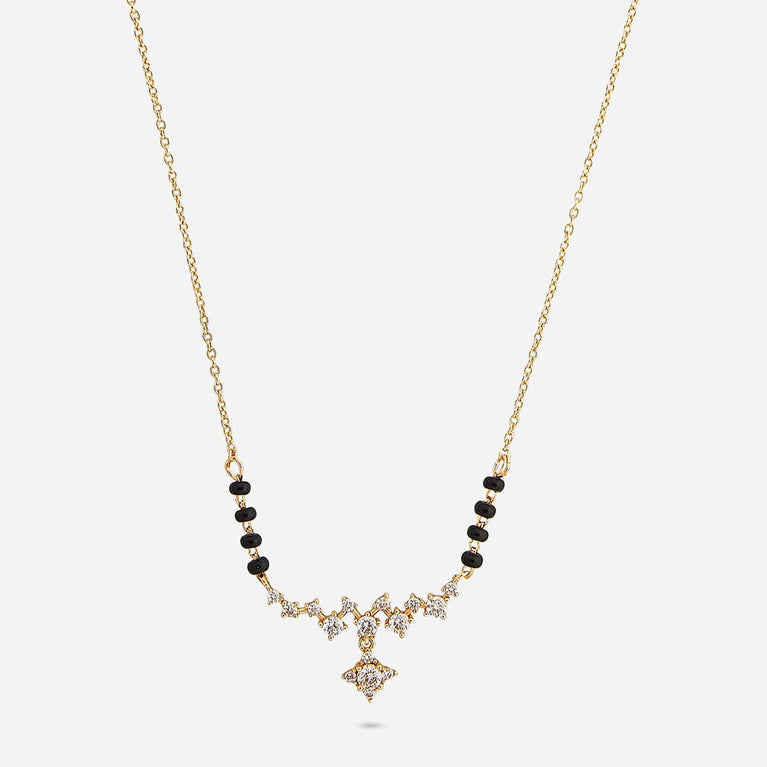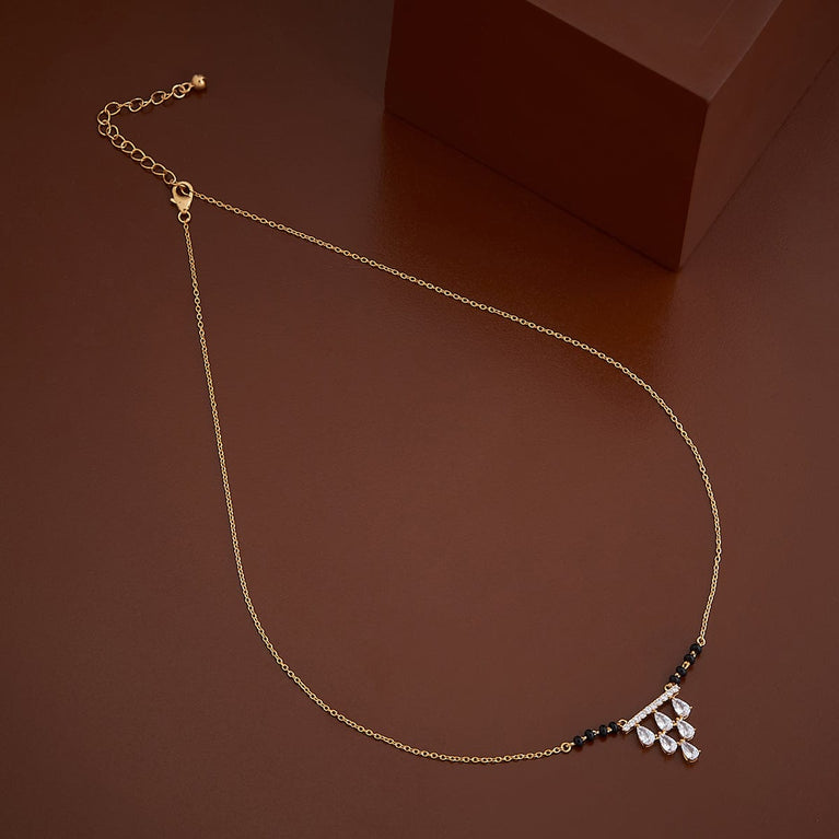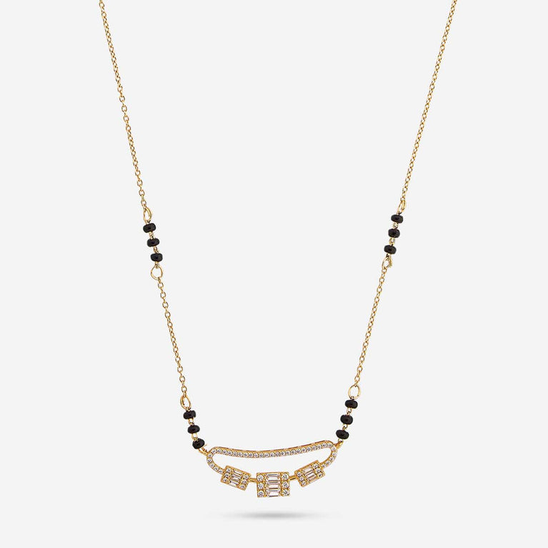 Kushal's Fashion Jewellery 92.5 Pure Silver MangalsutraOur top collection of mangalsutra will leave you spellbound. We have produced these necklaces with fine-quality zircon stones and 92.5 silver. You will feel the divine blessings enmeshed in the mangalsutra. Our mangalsutra comes with stunning gold polish. You can devise your conventional fashion with our mangalsutra collections.