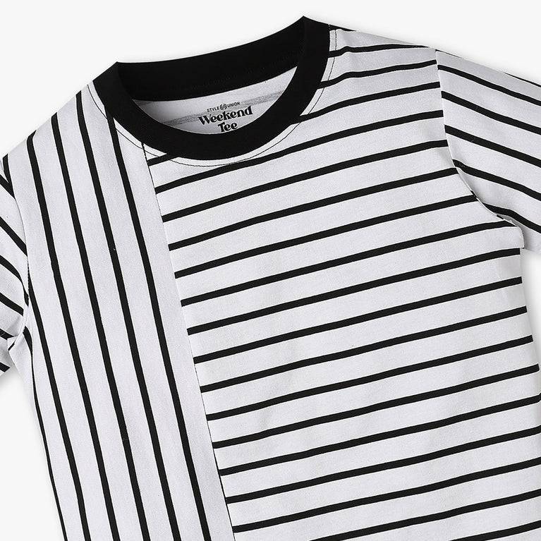 Experience the ultimate in comfort and style with our Boys Single Jersey Striped Weekend T-Shirt. Crafted from 100% cotton, this t-shirt offers a soft touch against the skin, ensuring all-day comfort for your little one. The classic striped pattern adds a touch of timeless style, making it a versatile addition to any wardrobe.