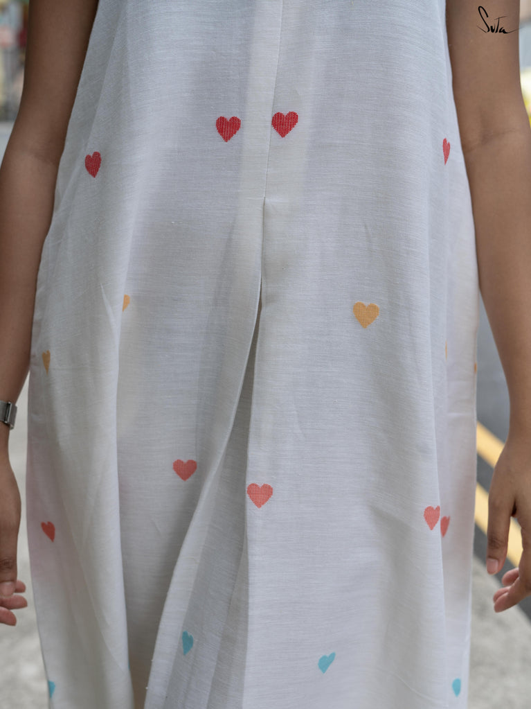 Sutas "made in heaven" mul cotton is also known as mul mul in West Bengal. The fabric is buttery soft and is known for its delicate beauty. Its fine weave lends a fluid texture to the fabric, which makes draping just so easy. Mul mul truly is like a hug that wraps you in its love.
