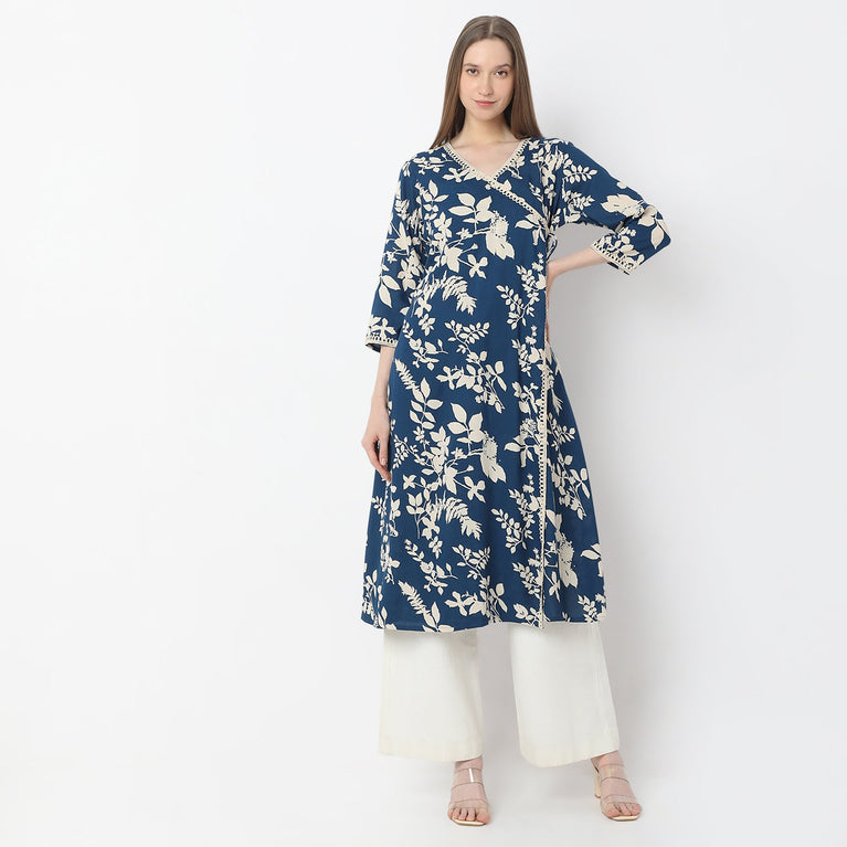 A-Line Printed Knee Length V-Neck Flared Kurta