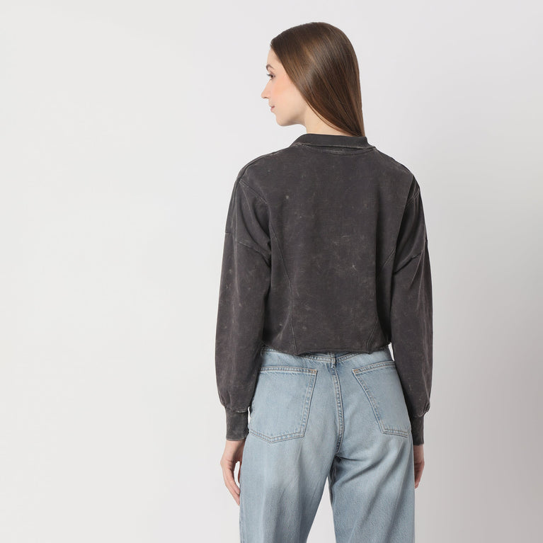 Boxy Fit Round Neck Full Sleeve With V-Neck Sweat Tee