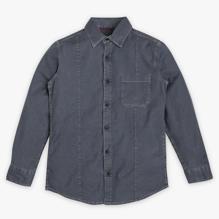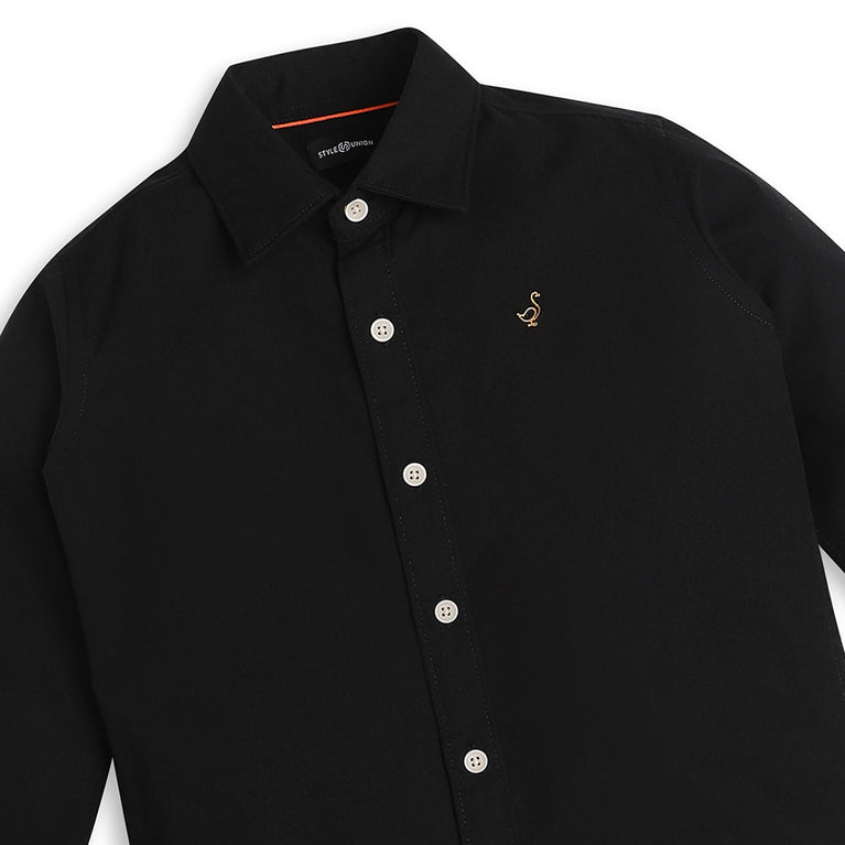 These solid pattern shirt has shirt collar and full sleeve. Made from cotton, your kid's feel comfortable wearing the product.
