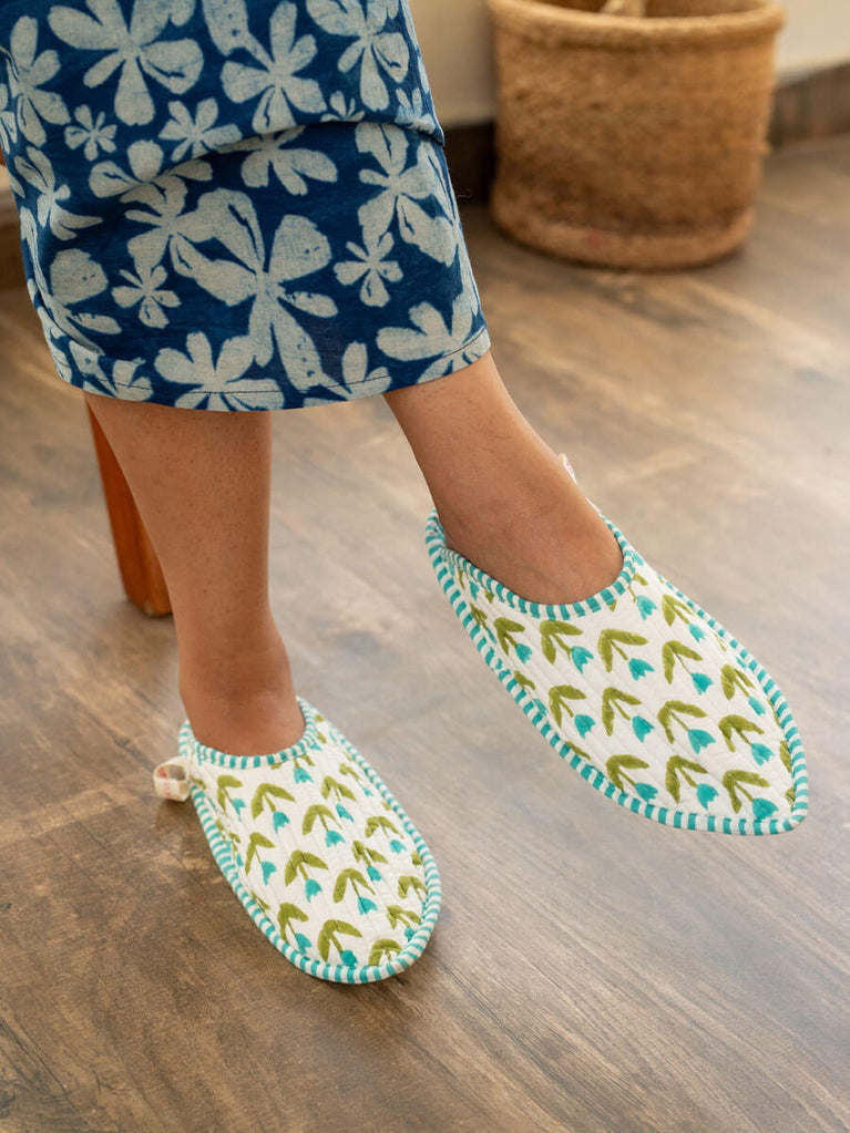 Tiny Tulip Quilted Cotton Home Slippers