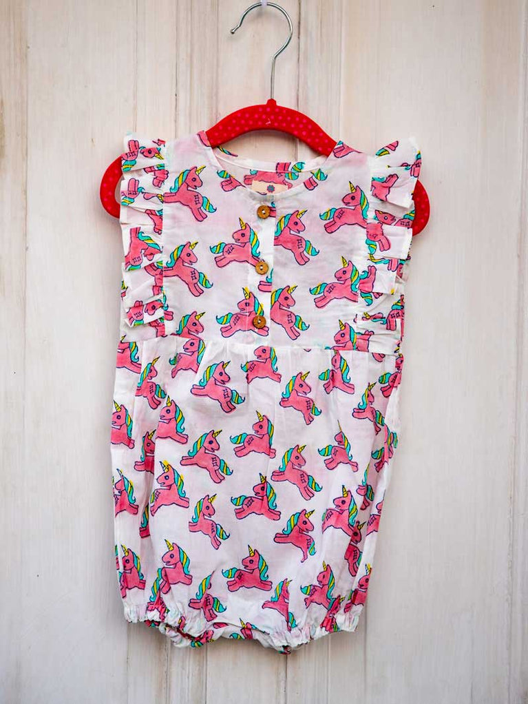Unicorn Organic Cotton Block Printed Romper