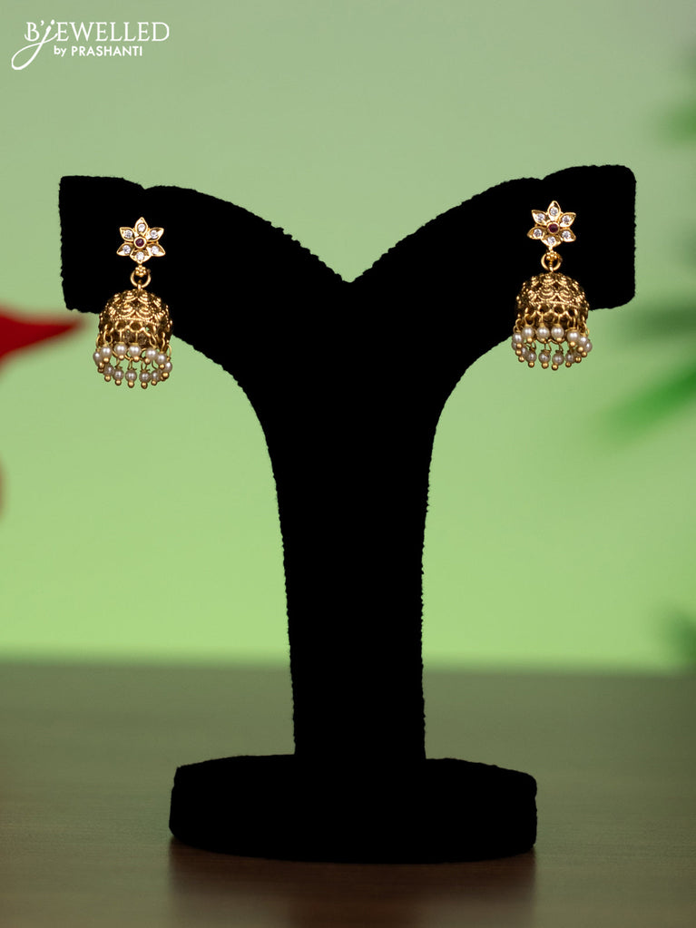 Antique attigai necklace with kemp stones and pearl & golden beads hanging