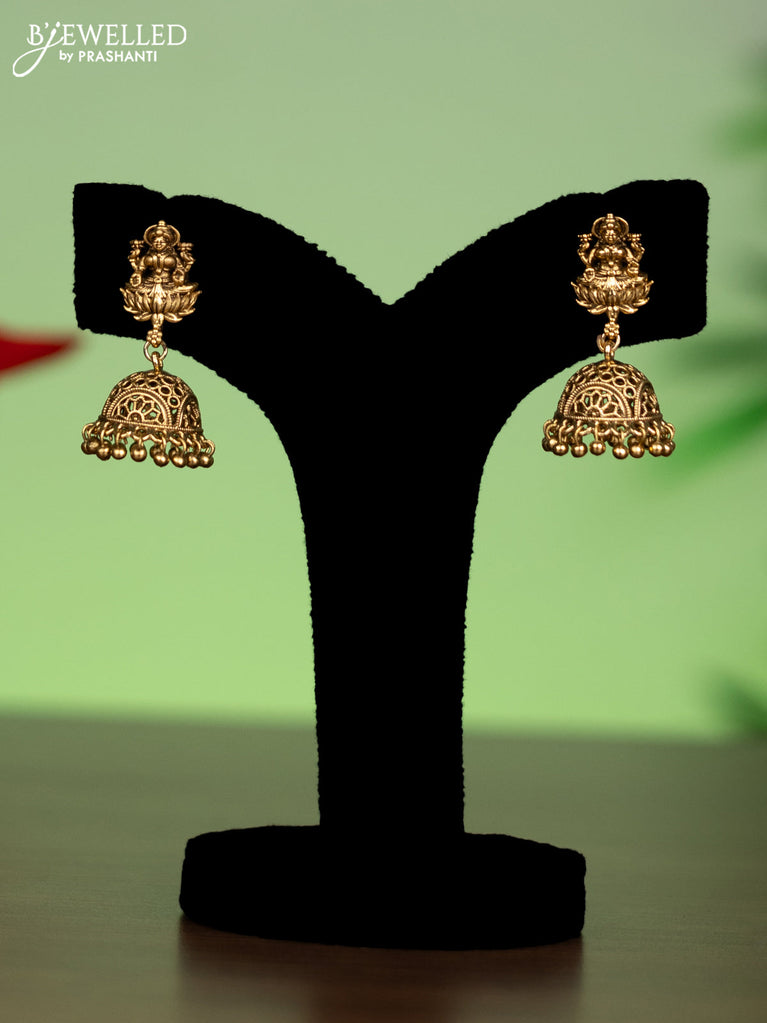 Antique attigai necklace with kemp stones and golden beads hanging without earrings