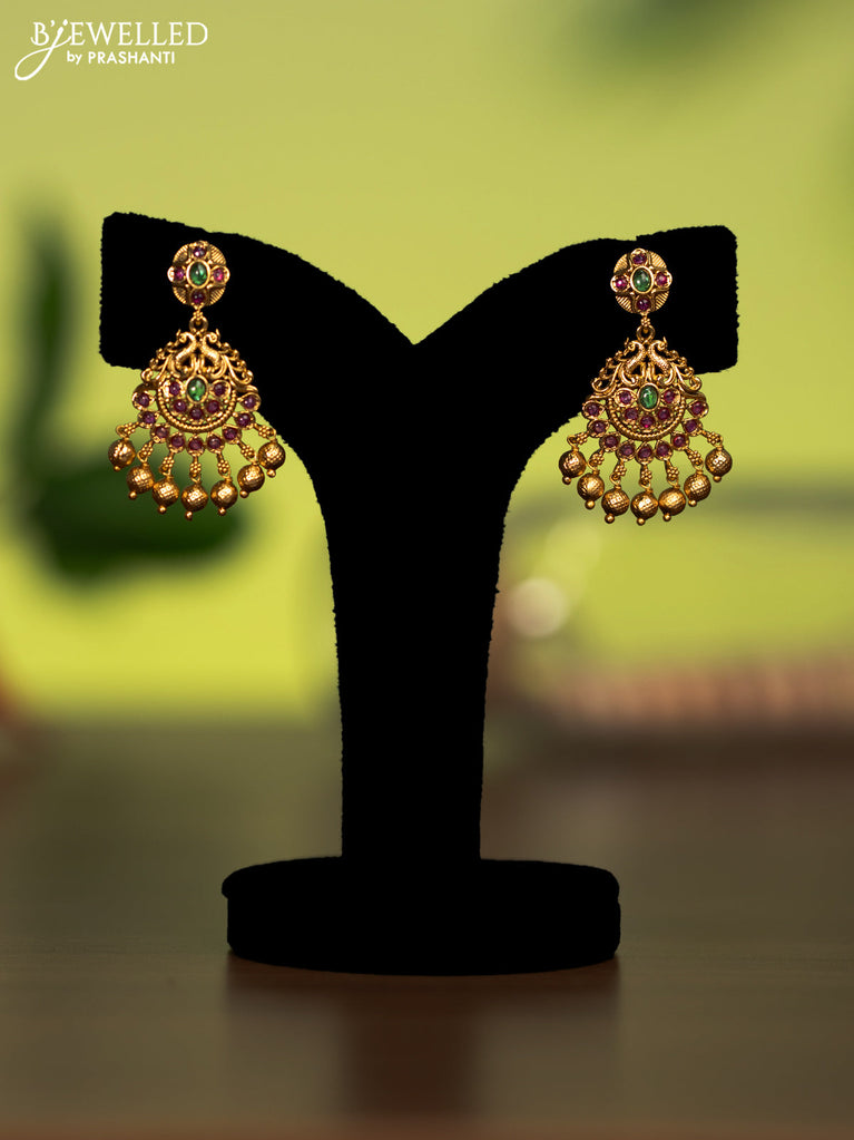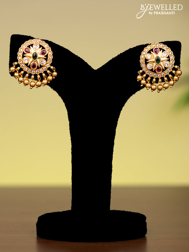 Antique attigai necklace with kemp & cz stones and golden beads hanging