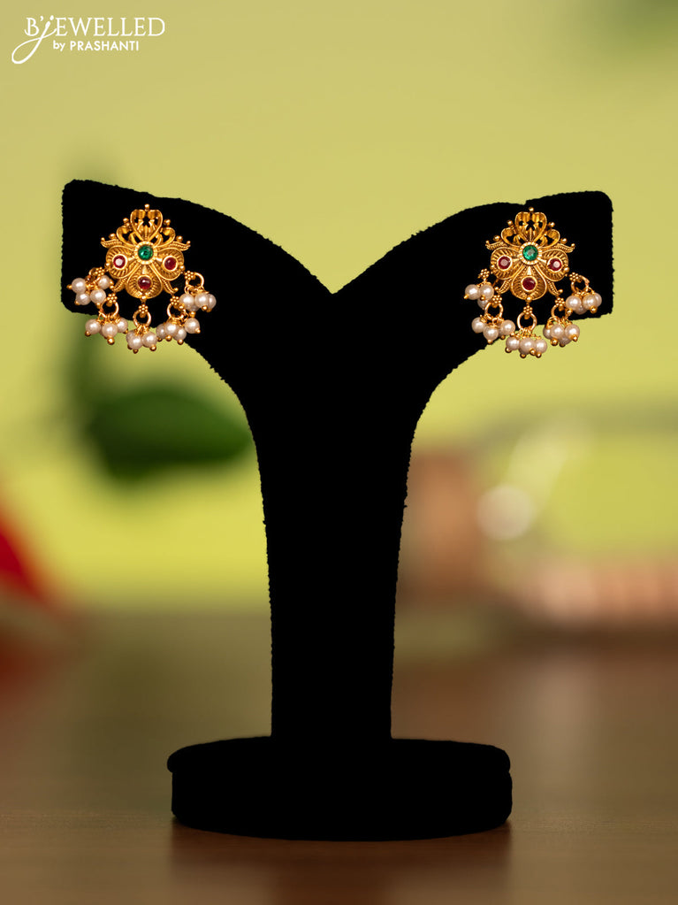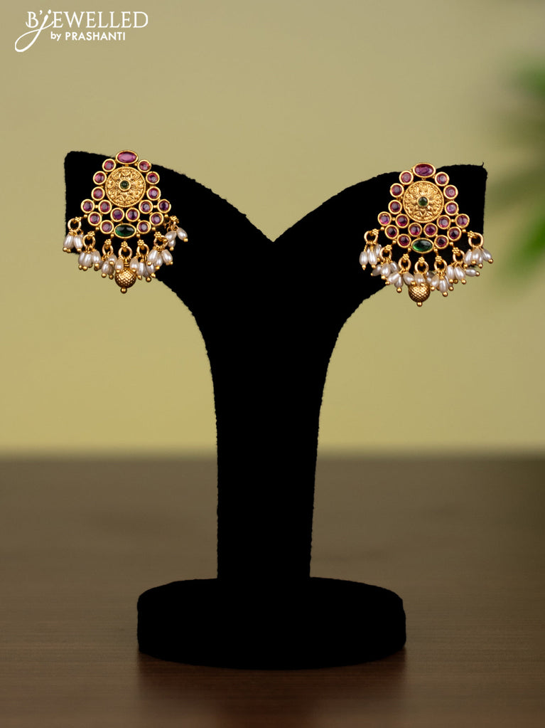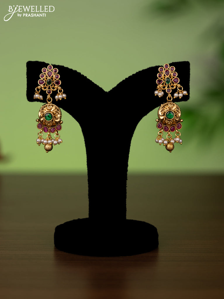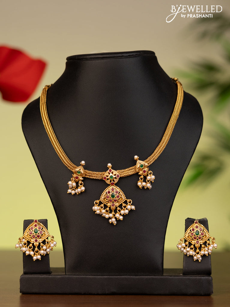 Antique attigai necklace with kemp stones and pearl hanging without earring