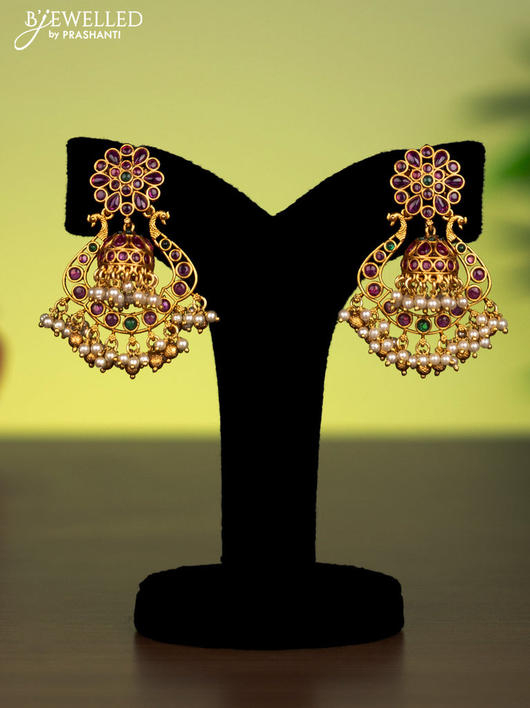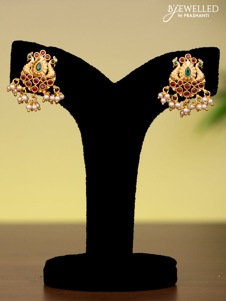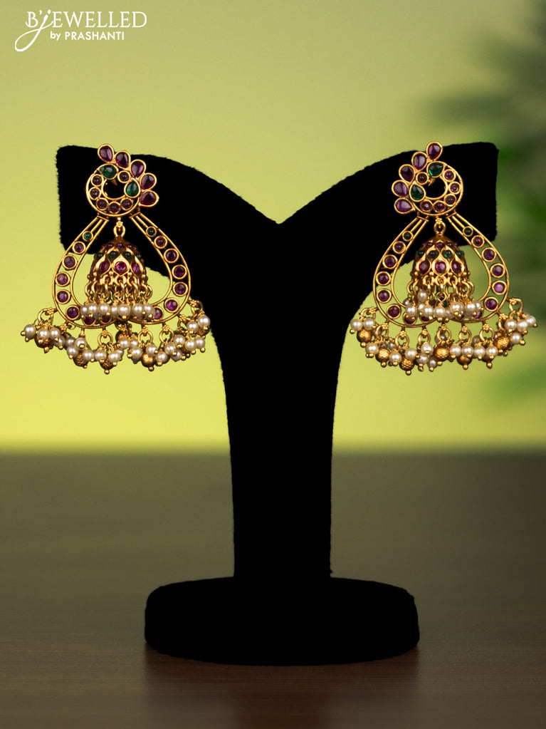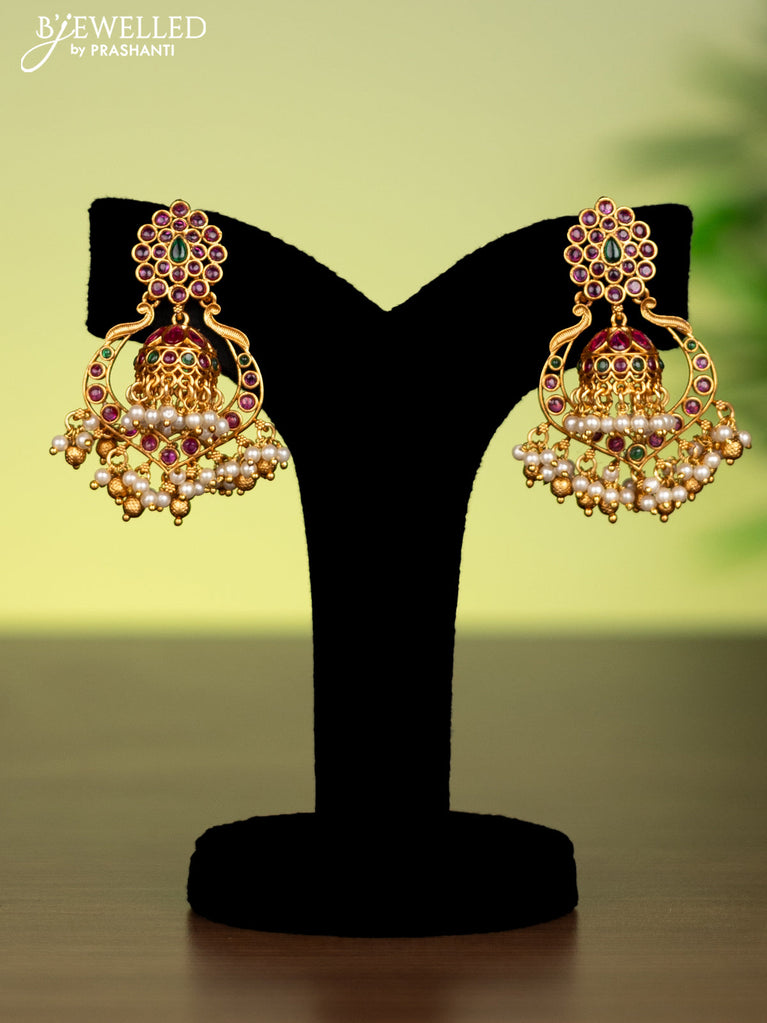 Antique attigai necklace with kemp stones and pearl hanging without earring