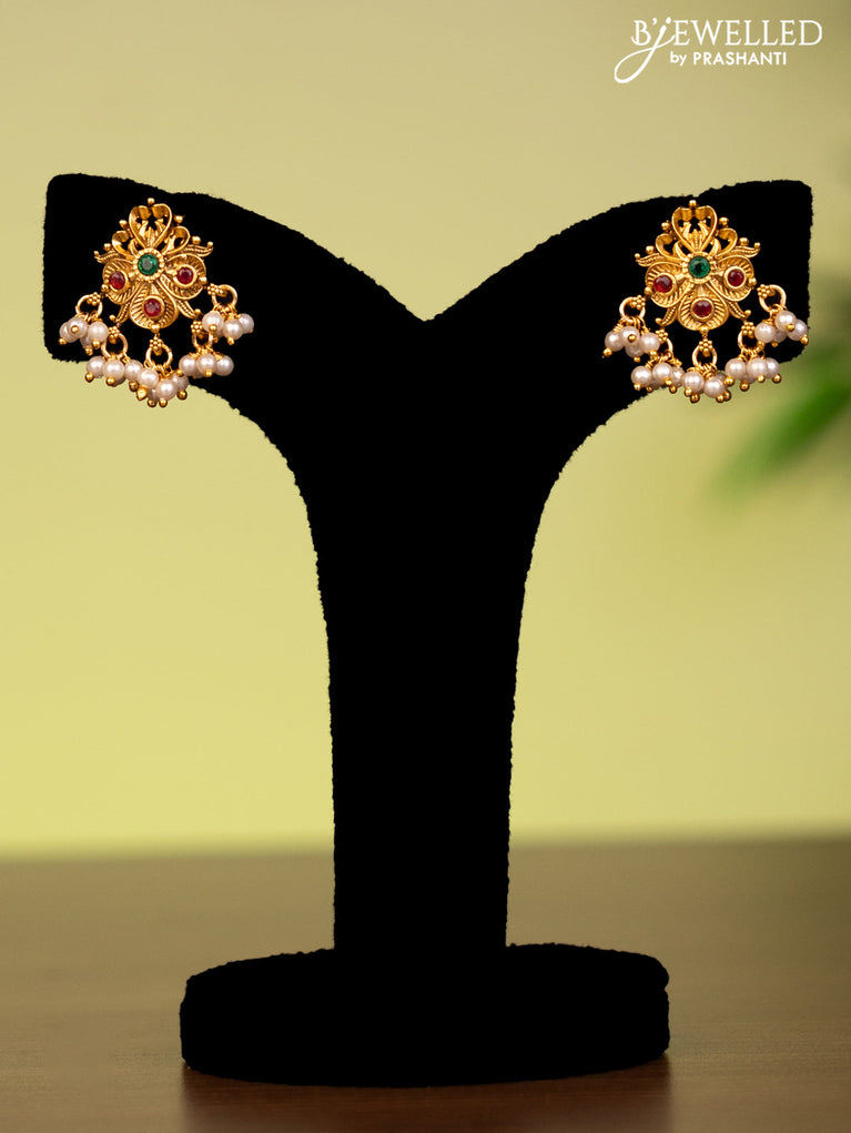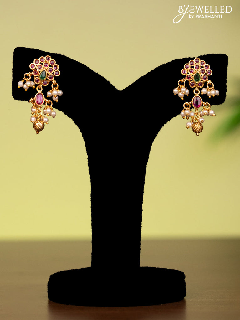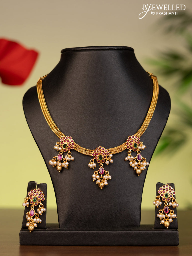 Antique attigai necklace with kemp stones and pearl & golden beads hanging