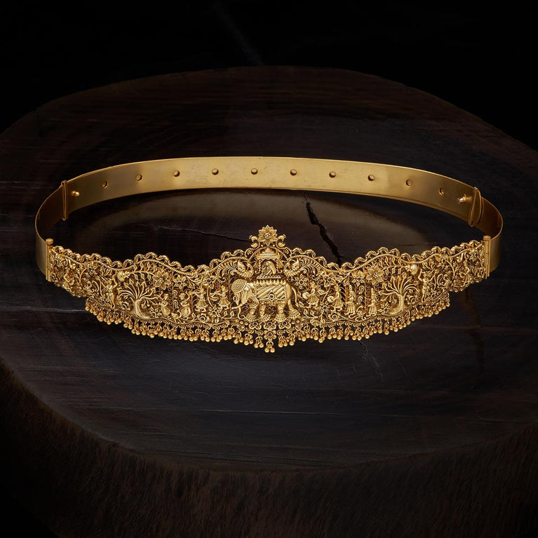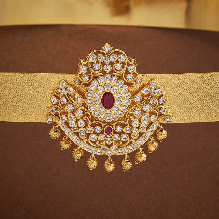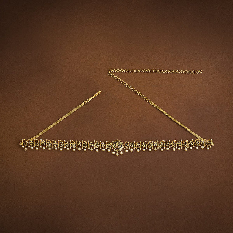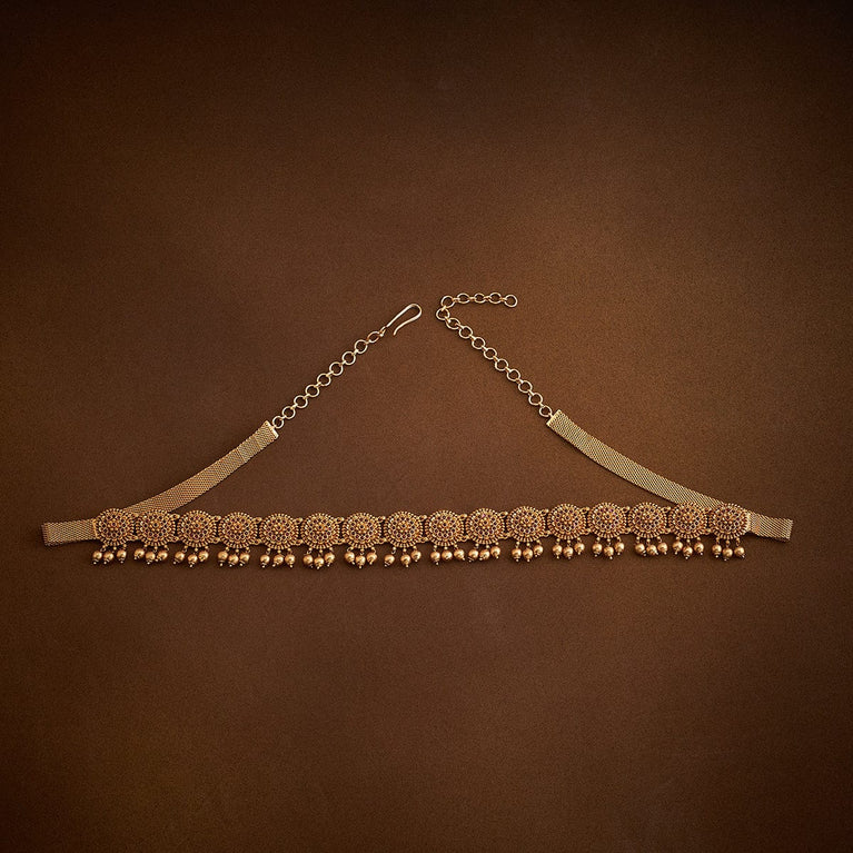 Kushal's Fashion Jewellery Flower Motif Antique BeltGet the confidence boost you wanted this wedding season with our latest antique belt. This adjustable belt will be the favourite accessory for all traditional outfits, thanks to its heavenly motifs studded with white stones and adorned with gold polish. All you have to do is wear this belt with a classic outfit and confidently keep your head high.