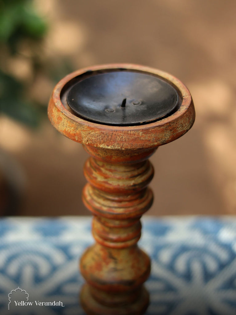 Converted few such rare Antique Wooden Brackets into candle stands to decorate your bespoke home - to evoke nostalgia.