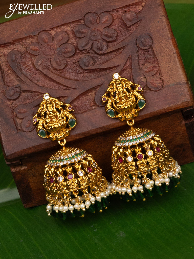 Antique big size jhumka lakshmi design with kemp & cz stones and pearl hangings