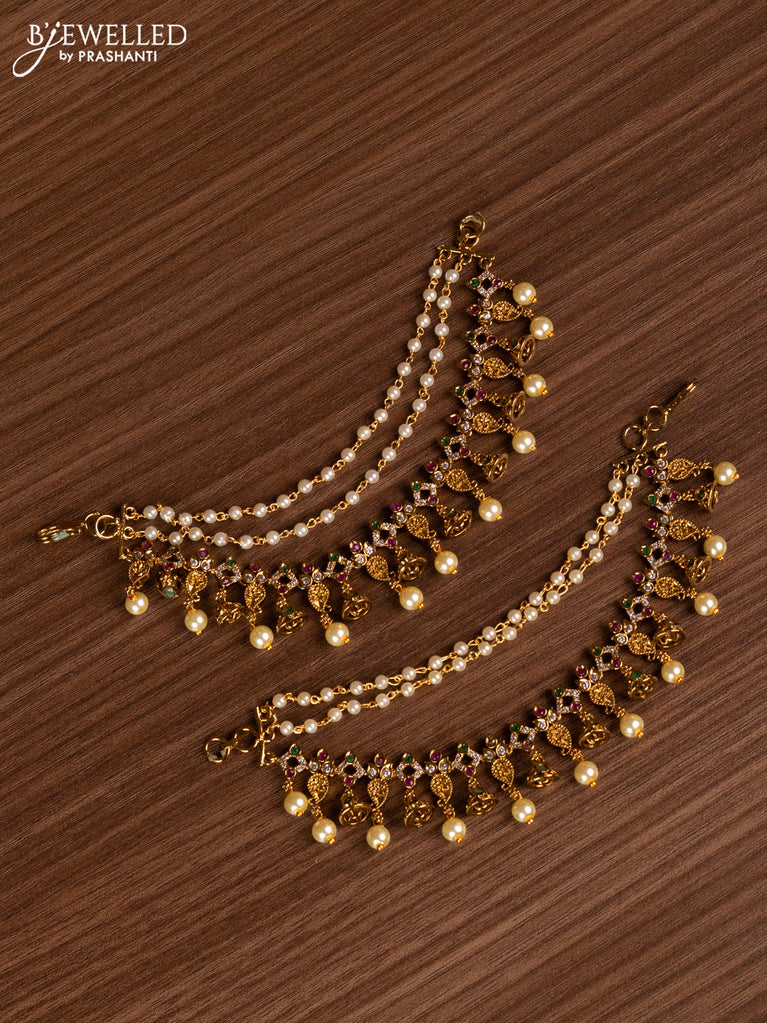 Antique bridal set manga pattern with kemp & cz stones and golden beads hanging