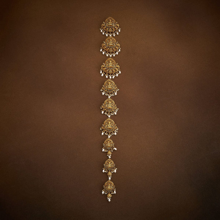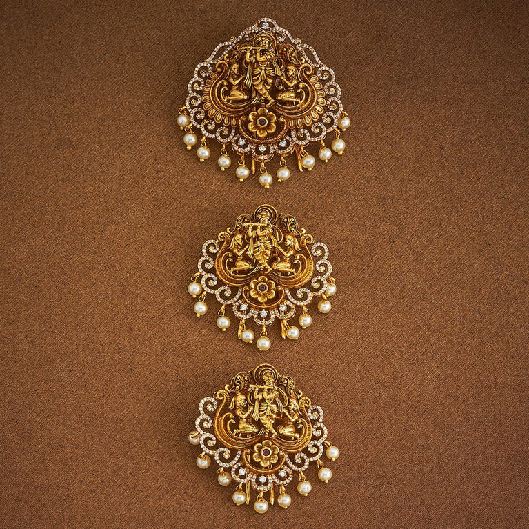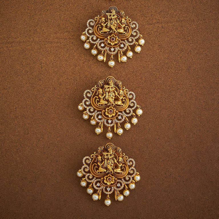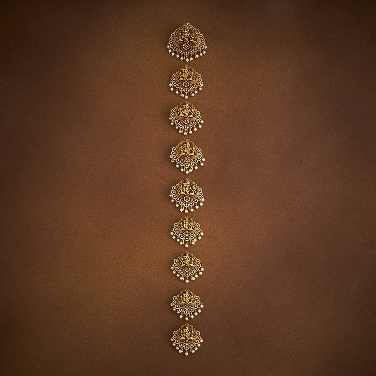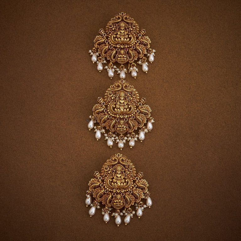 Antique choker with lakshmi design pendant and pearl hangings without earrings