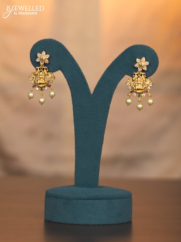 Antique haaram lakshmi design with kemp and cz stones and pearl hangings
