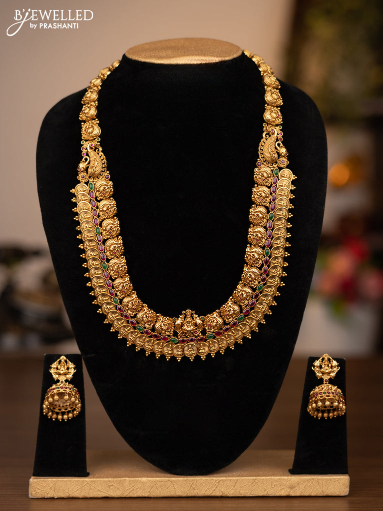 Antique haaram lakshmi with kemp stones and golden beads hangings