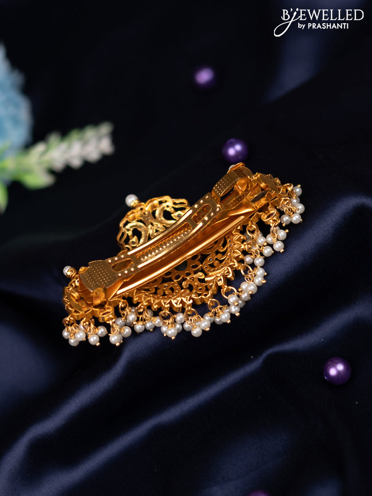 Antique hair clip medium size with kemp & kundan stones and pearl hangings