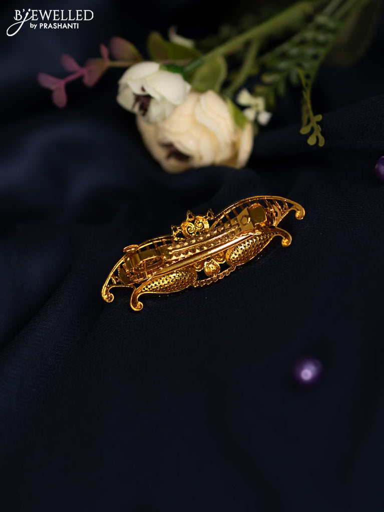 Antique hair clip medium size peacock & lakshmi design with kemp & cz stones and pearl hangings